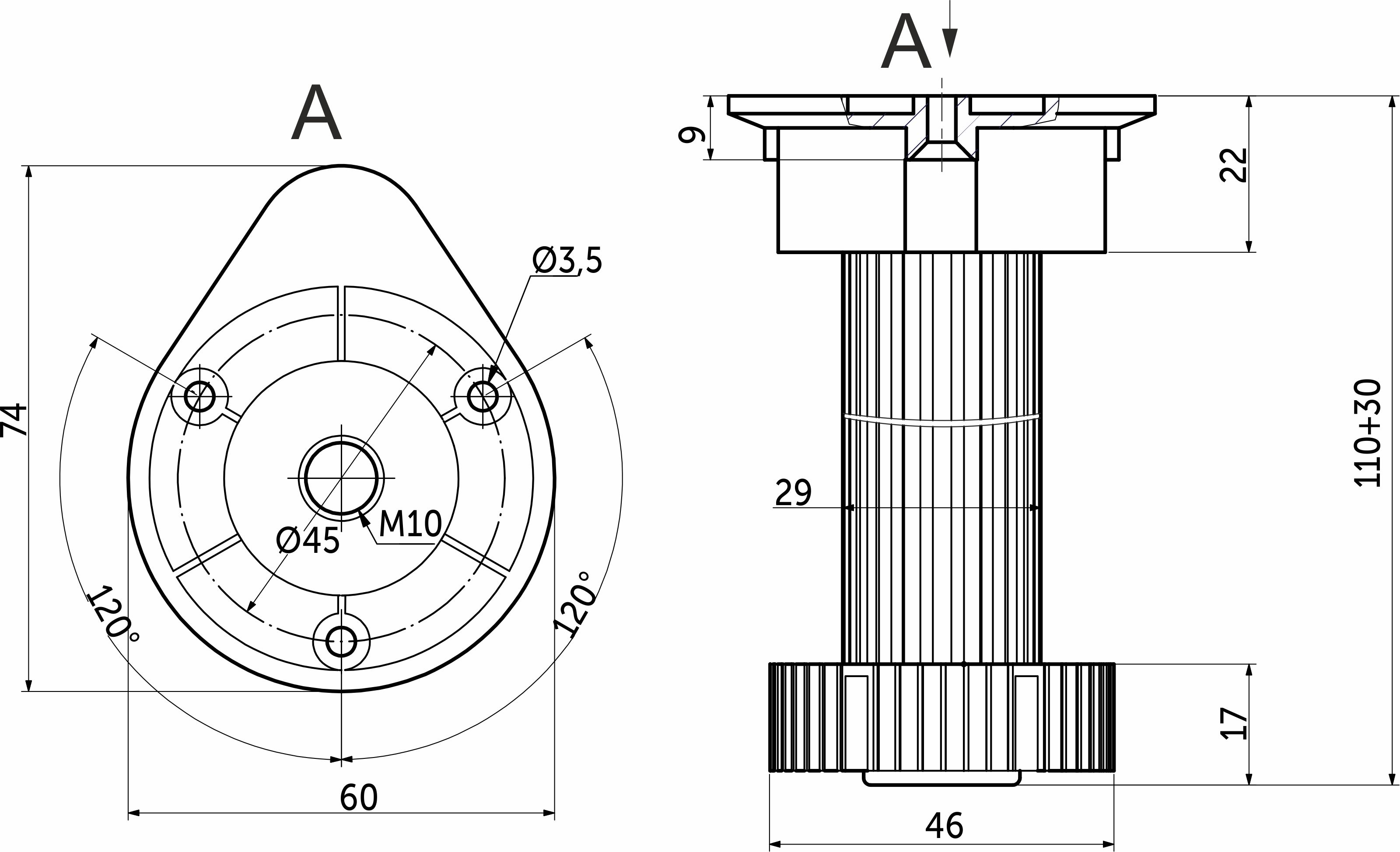 Опора кухонная пласт. h120 трехсоставная с овальным креплением, черный (1 упак. = 200 шт.) AKS