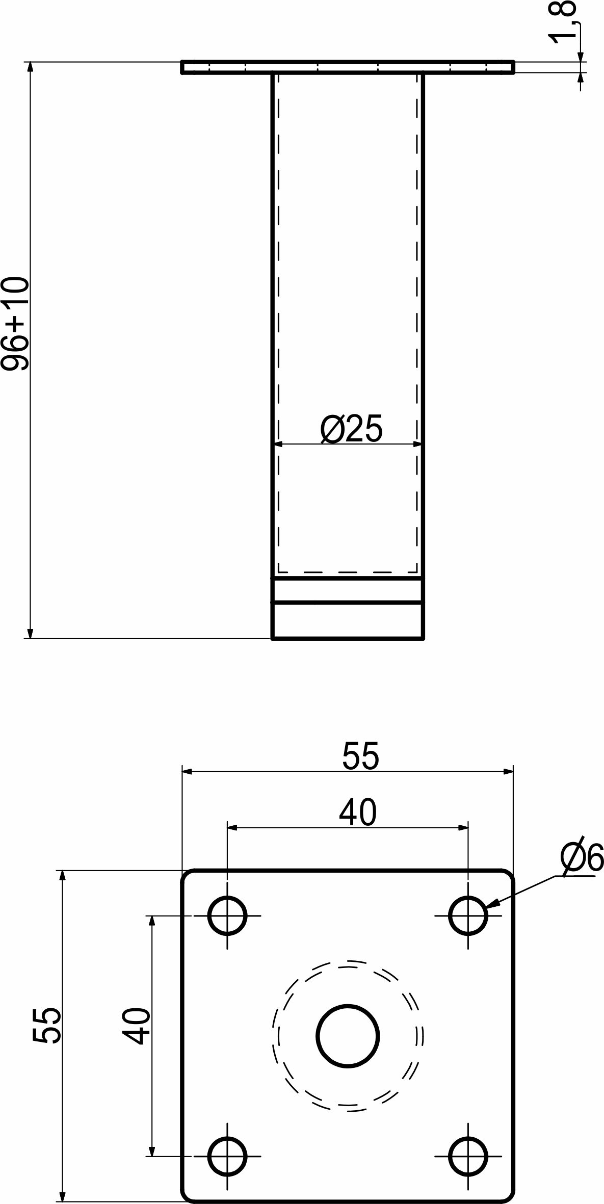 Опора меб. мет. D-100 h100 d25 с регул. черный (тип 2)AKS