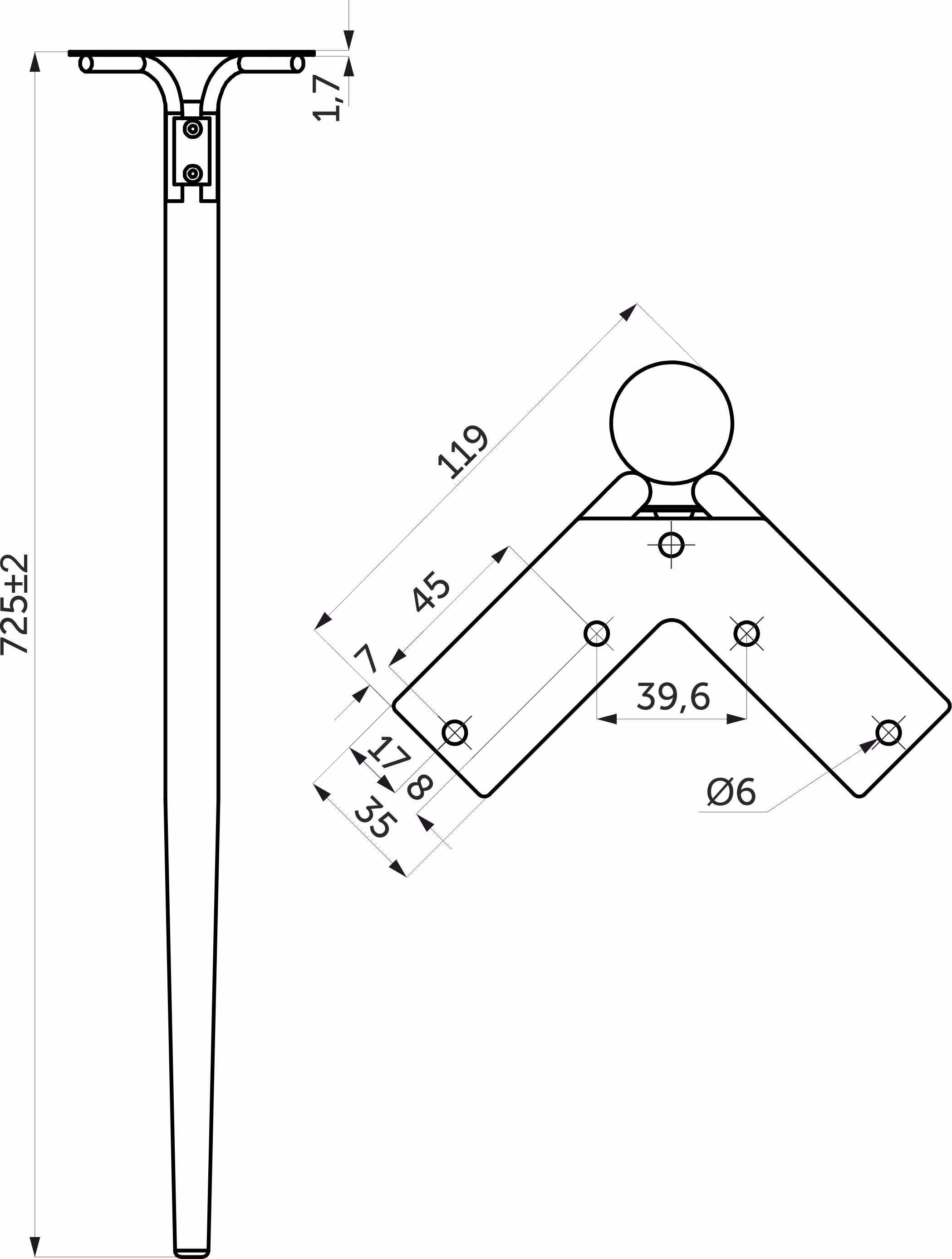 Высота опоры - 725мм.