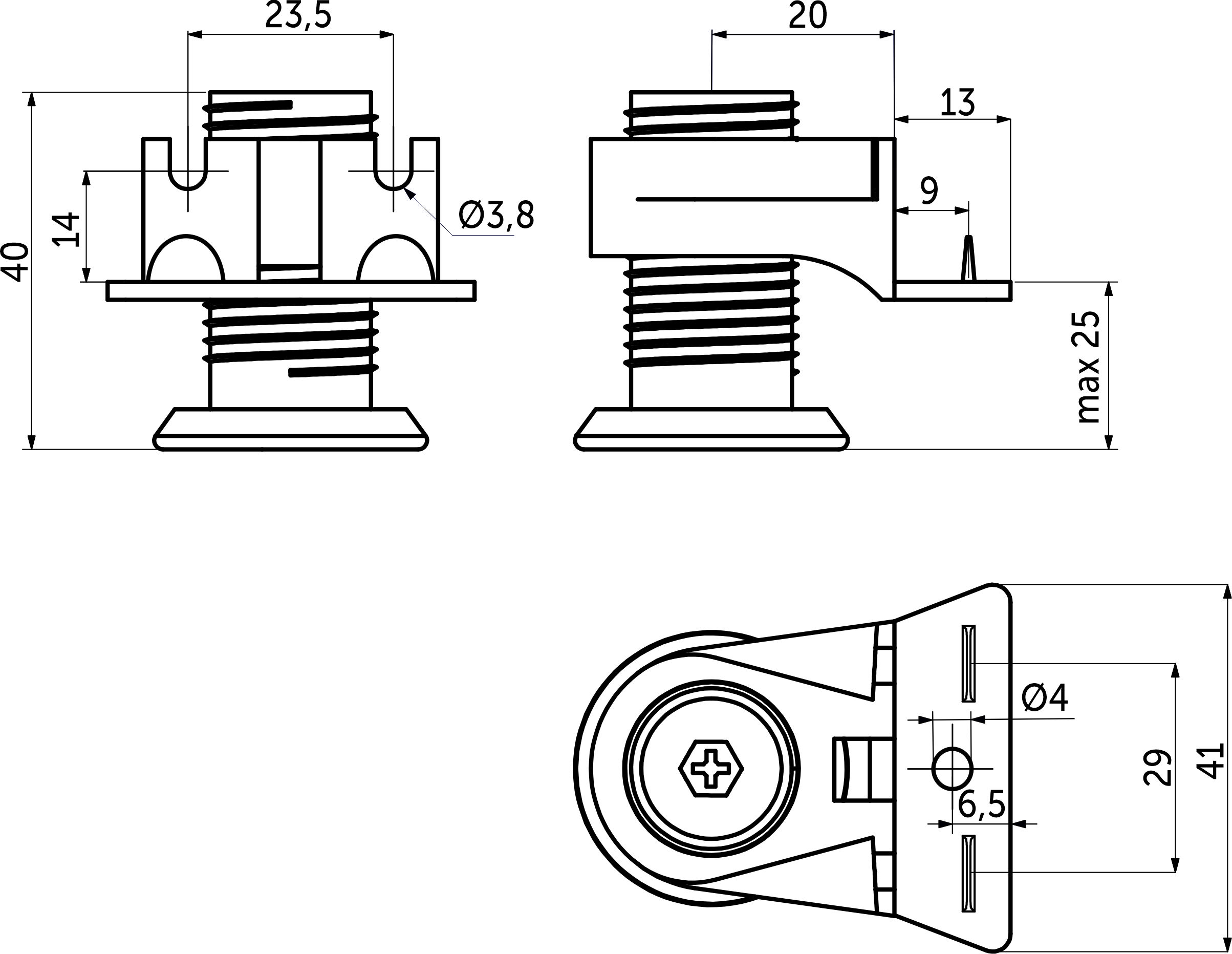 Опора меб. мет. INTEGRATO G h25 с регул., врезная цинк+черный AKS