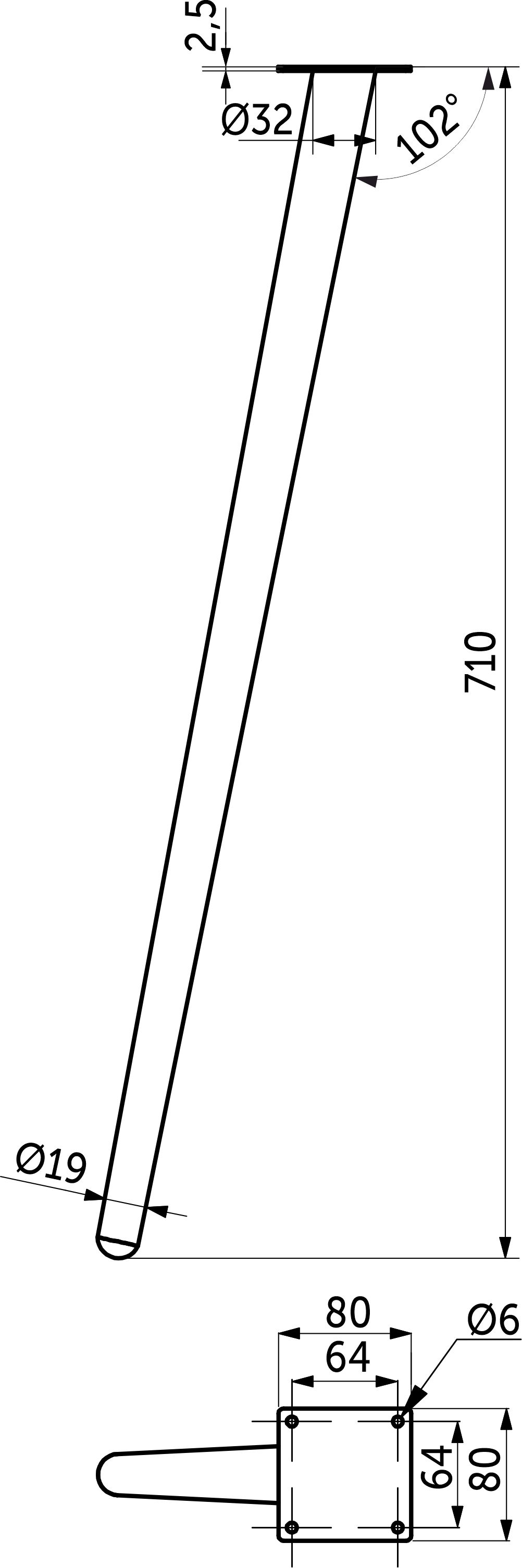 Опора металлическая наклонная для столов. Цвет - черный. Материал - сталь. Высота - 710 мм.