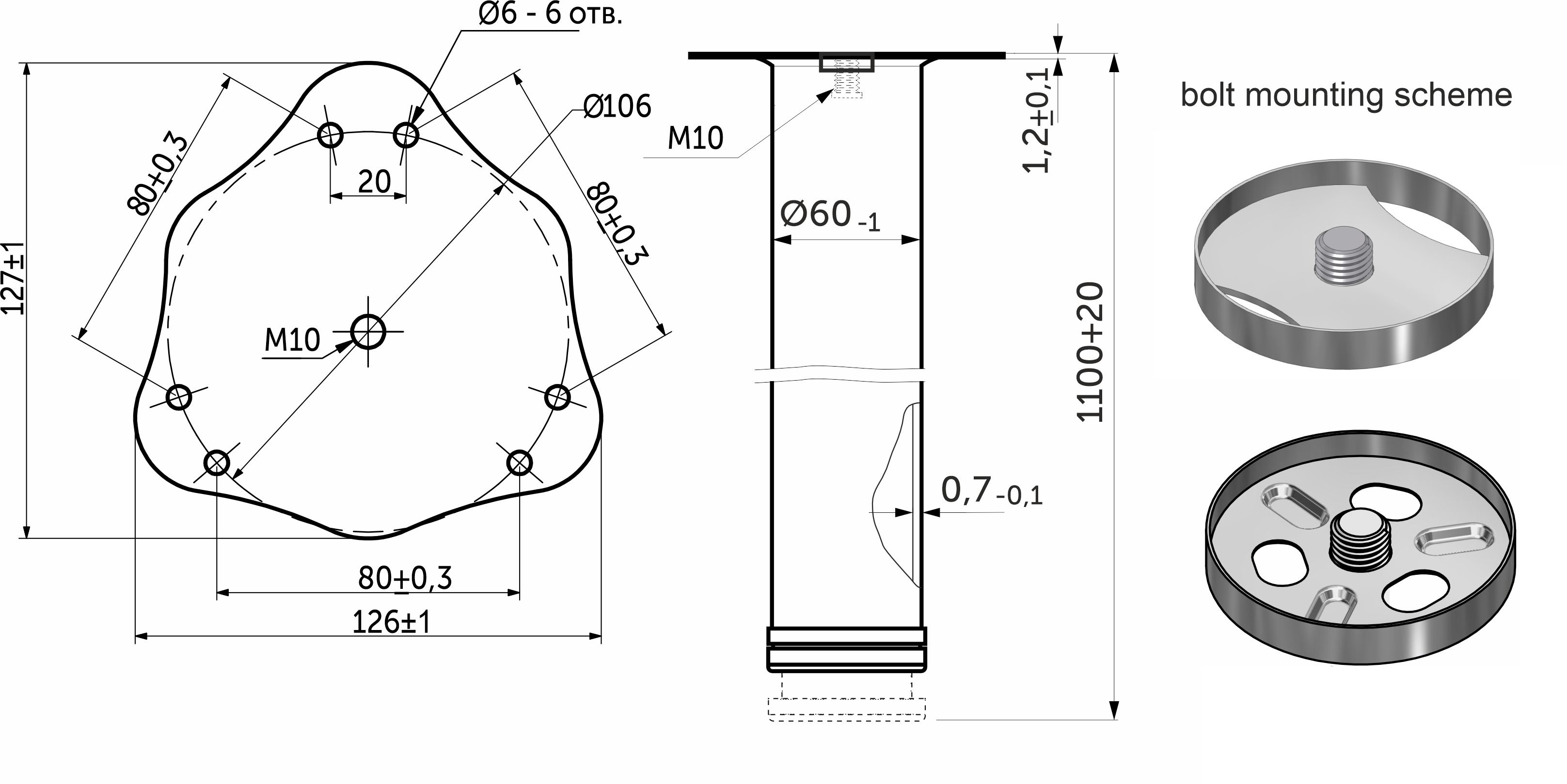 Опора меб. круглая d60 h1100, черный, винт М10, AKS
