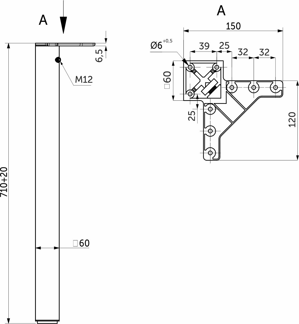 Классическая квадратная металлическая опора для столов разработана совместно с опытными производителями мебели с учетом всех пожеланий - усиленное крепление, есть возможность регулировки 20 мм.