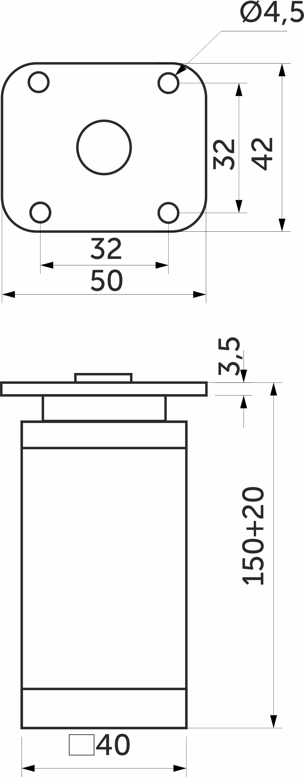 Опора меб. алюм. DAKP-27 h150 с регул. мат.хром AKS