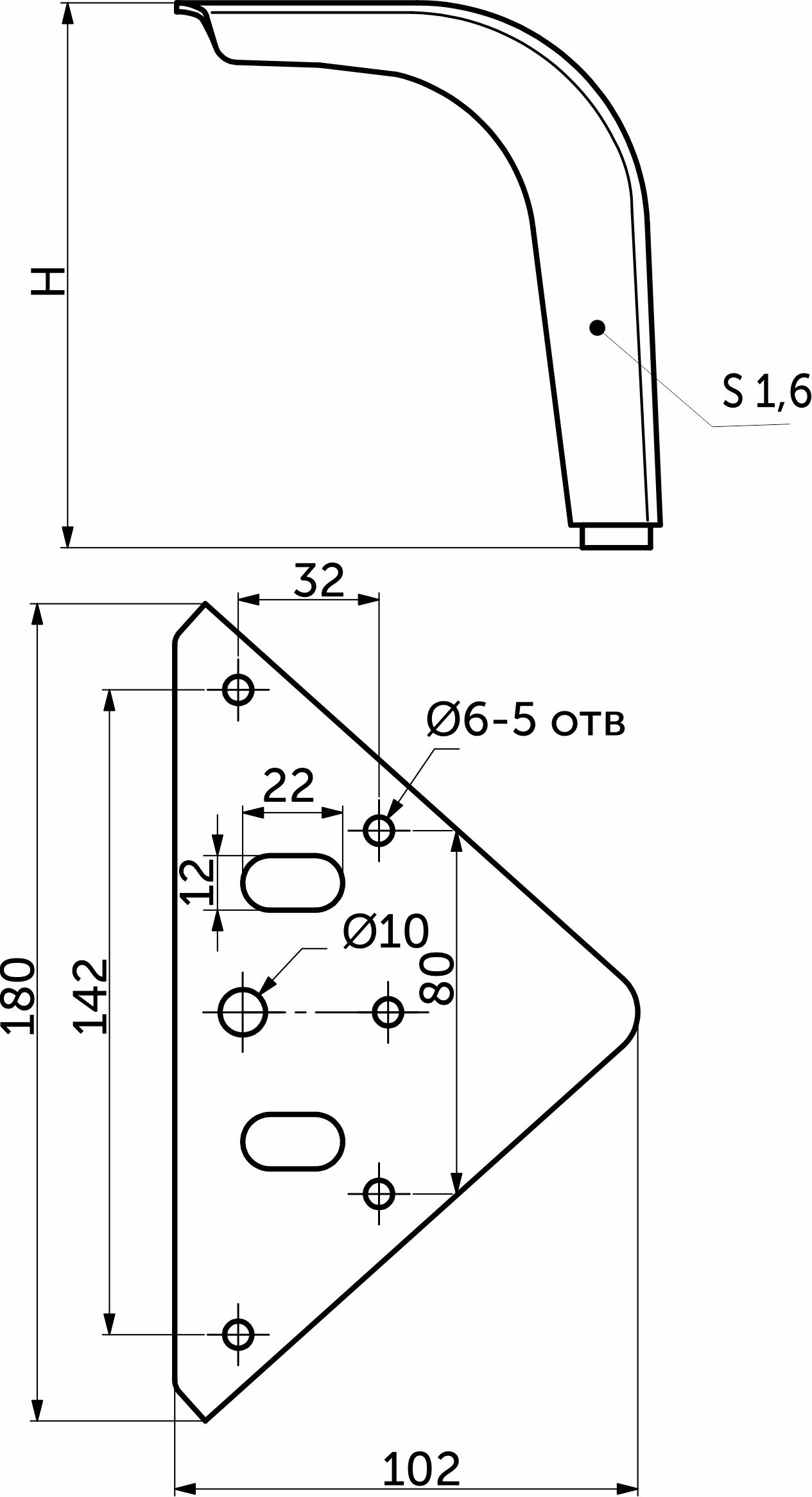 Опора меб. мет. DELI h150 угловая черный муар AKS