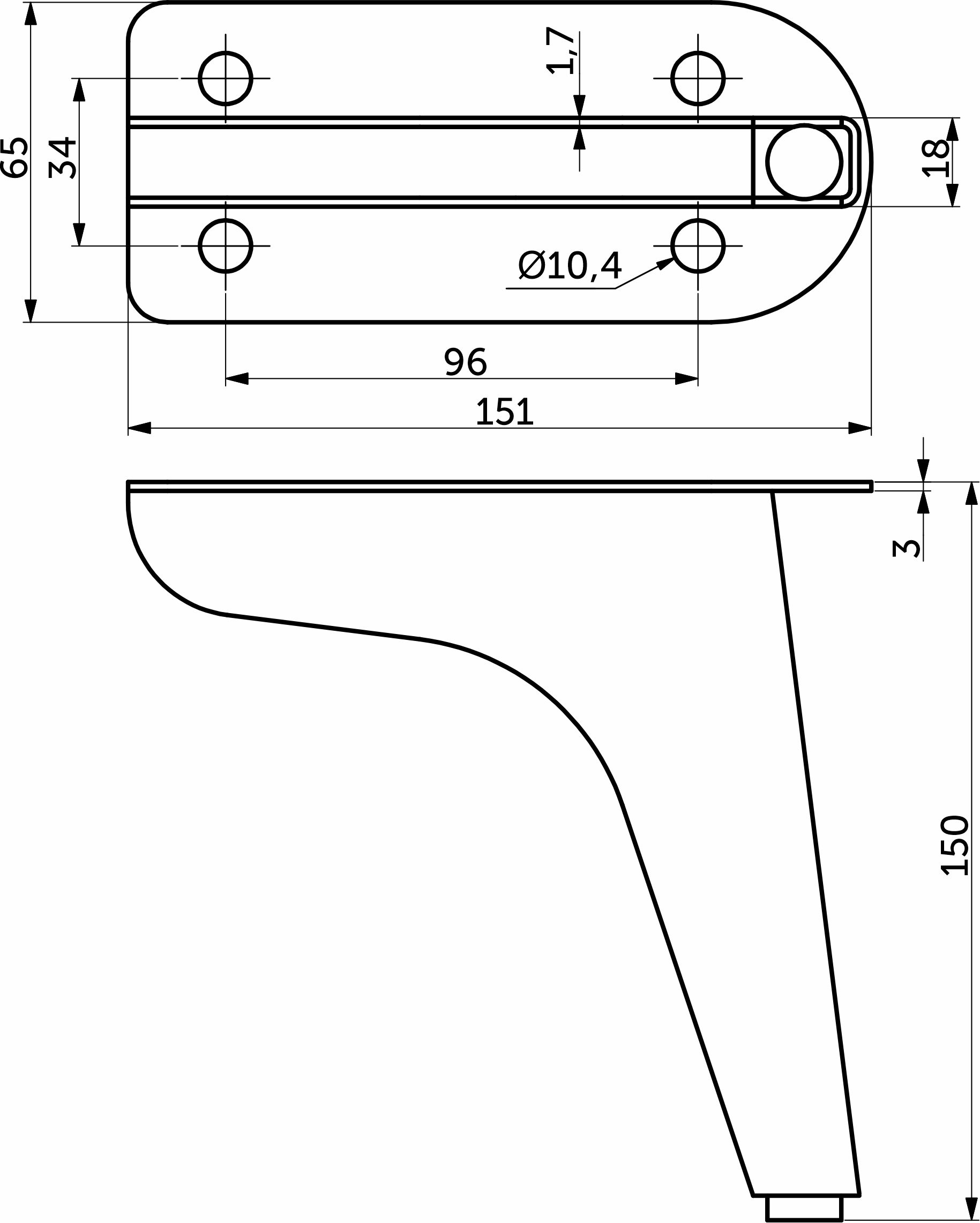Опора мебельная металлическая. Применяется для крепления к различной мебели в качестве опорного и декоративного элемента.