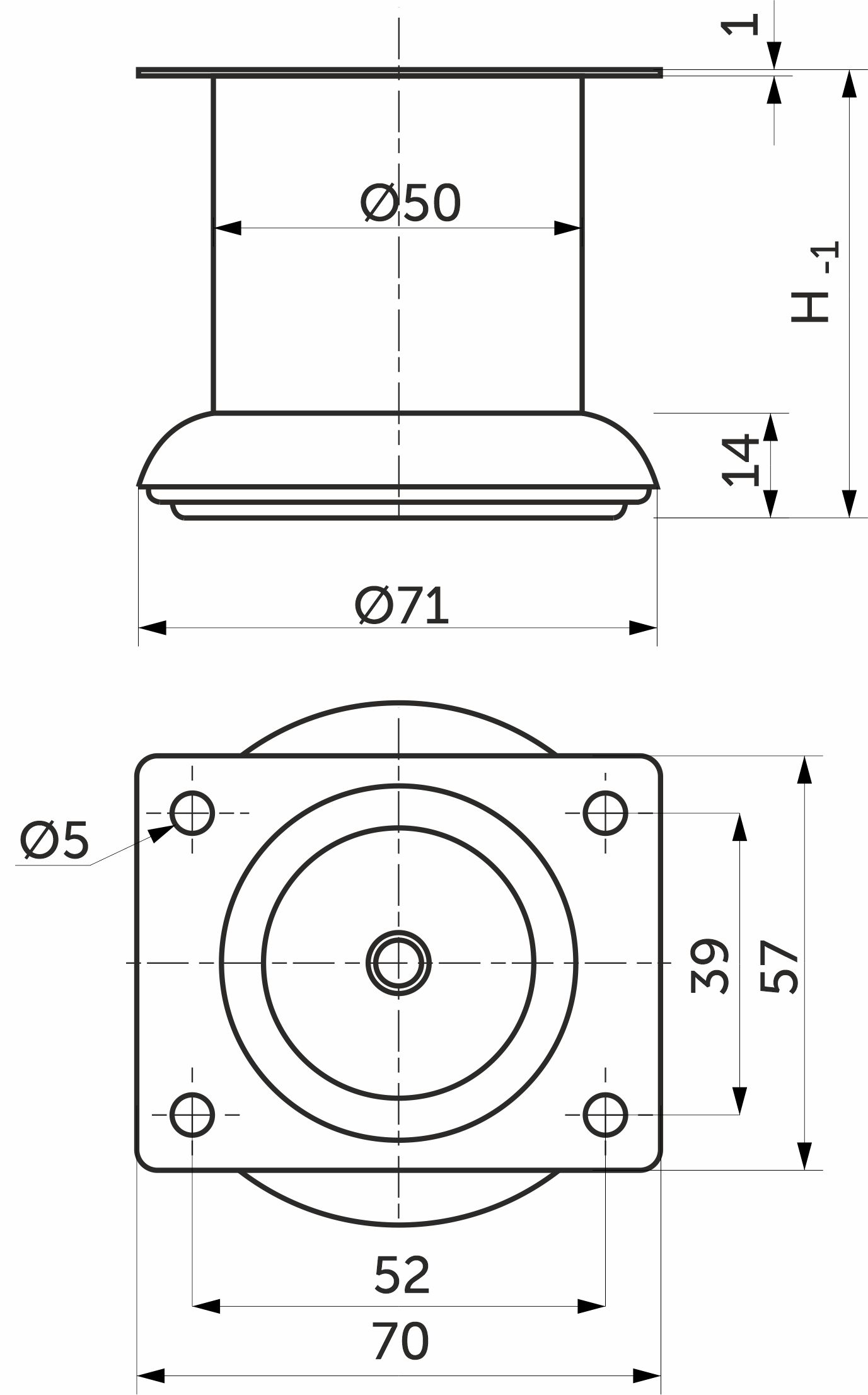 Опора меб. мет. TB019 (B140) d50 h100 хром AKS
