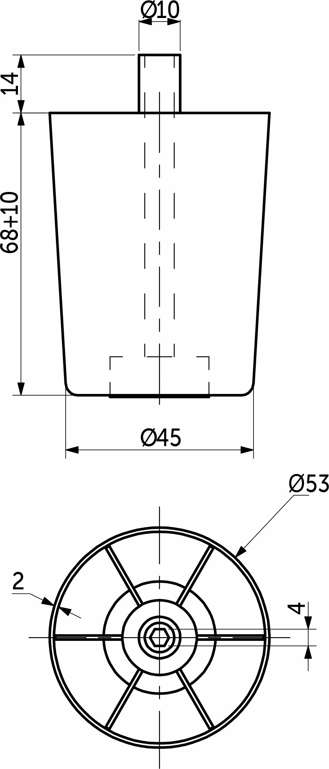 Опора пластиковая применяется для регулировки мебели по высоте. Регулировка происходит через отверстие в дне ящика с помощью шестигранника
