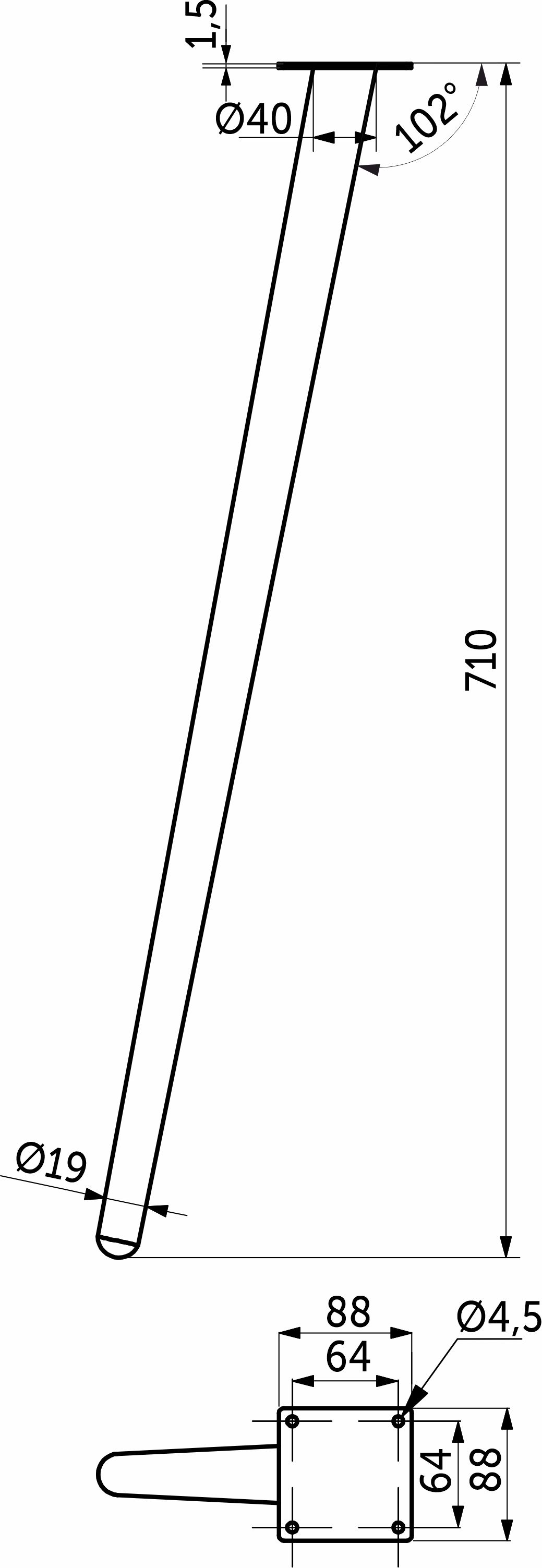 Опора меб. конусная h710 наклонная, белый AKS