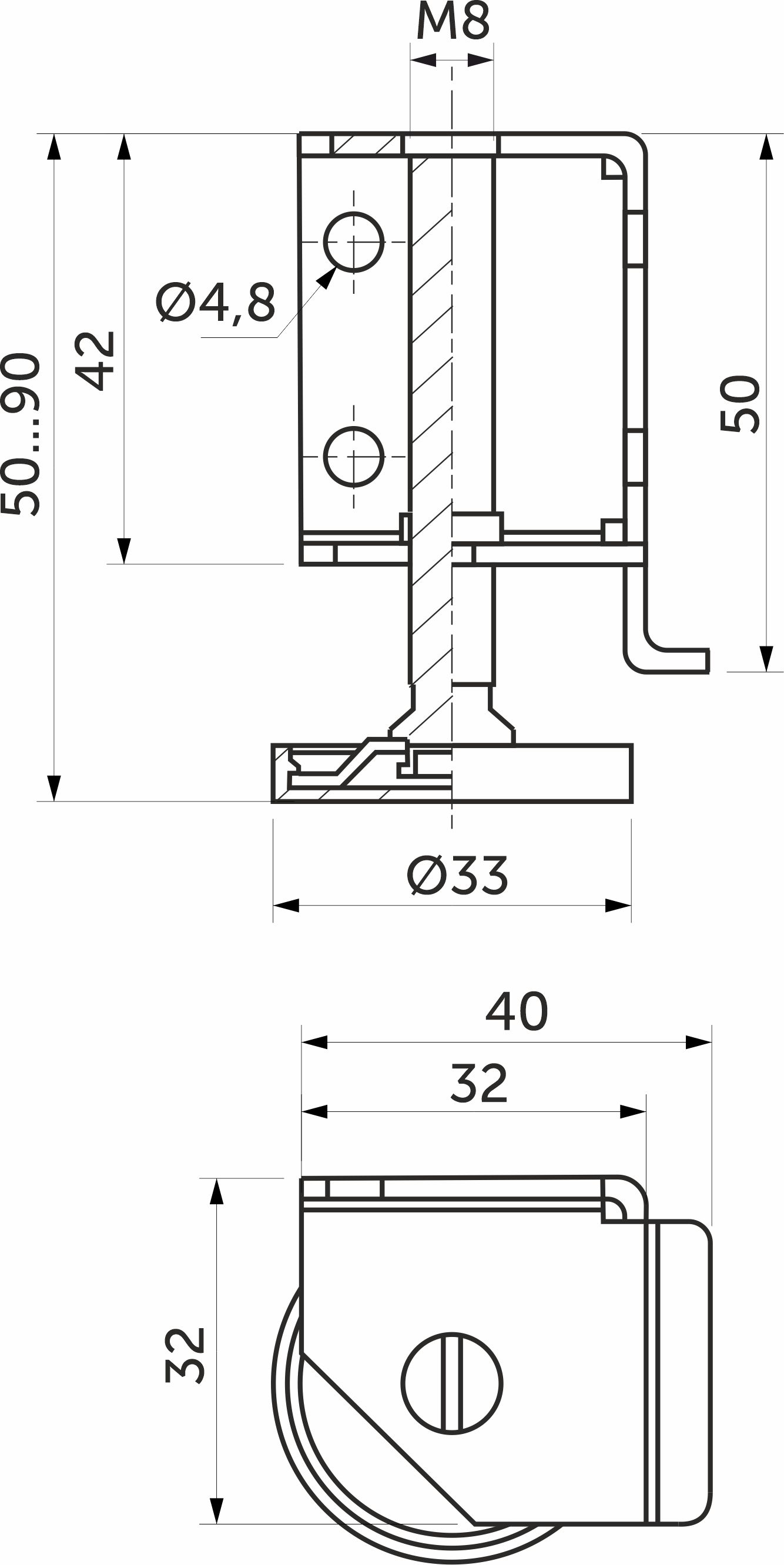 Опора применяется для регулировки шкафов и комодов по высоте. Регулировка происходит через отверстие в дне ящика с помощью шлицевой отвертки.