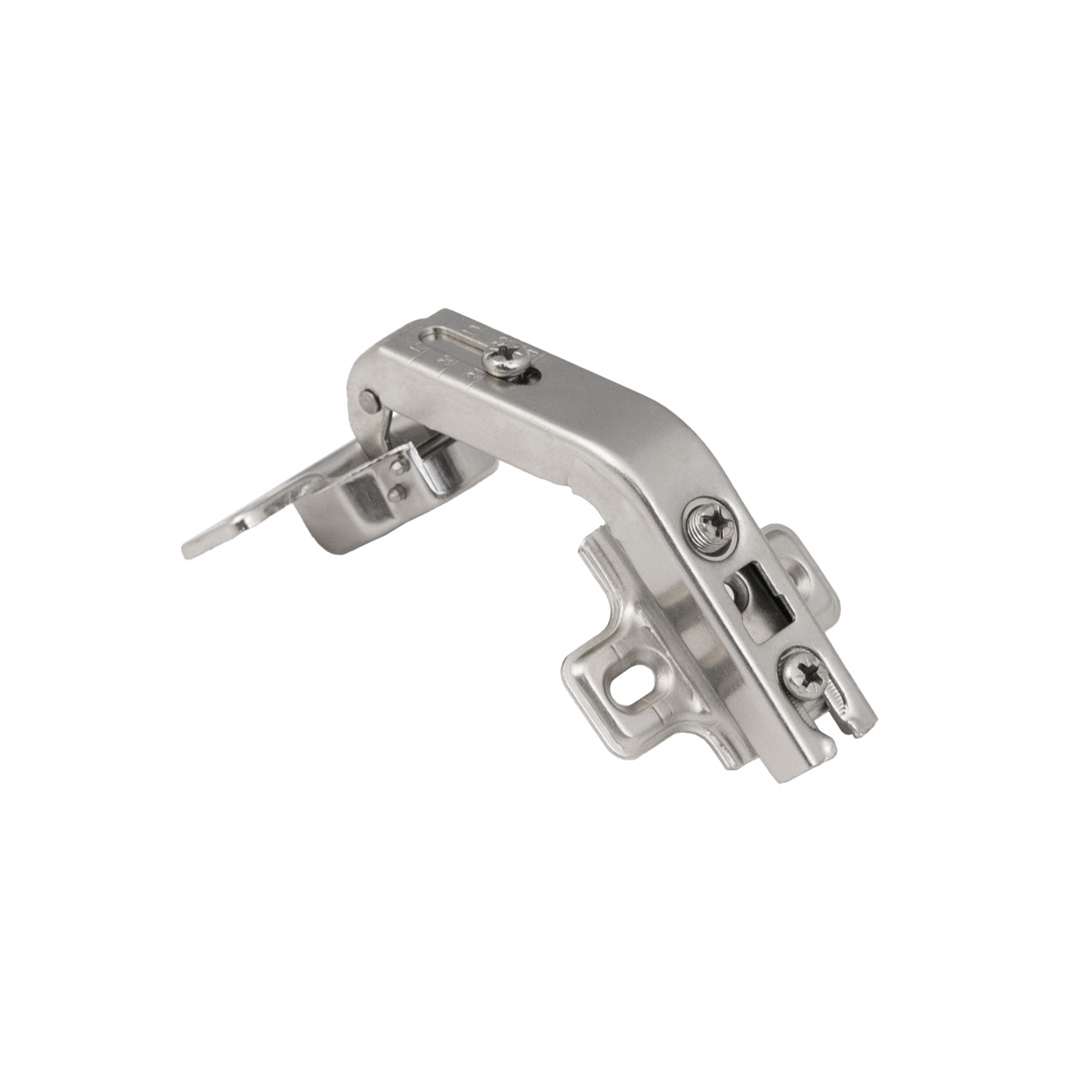 Петля угловая накладная 135 градусов карусельная с планкой H-2, 45 или 48 мм - специальный вид петли, используемый для двойных складных дверок (фасада из двух половин) в угловых открывающихся конструкциях мебельных изделий.