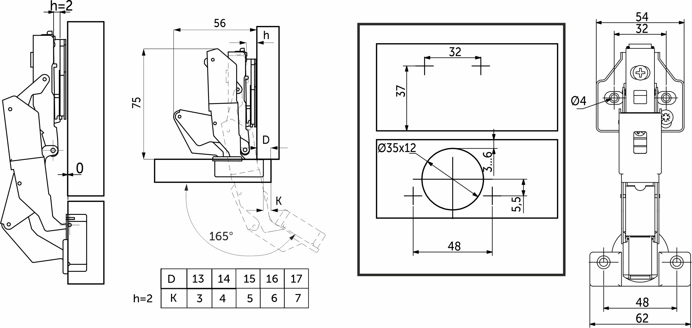 Петля внутренняя с доводчиком 45мм h0 clip-on AKS PLUS 3D узкая черная (саморезы, заглушки)