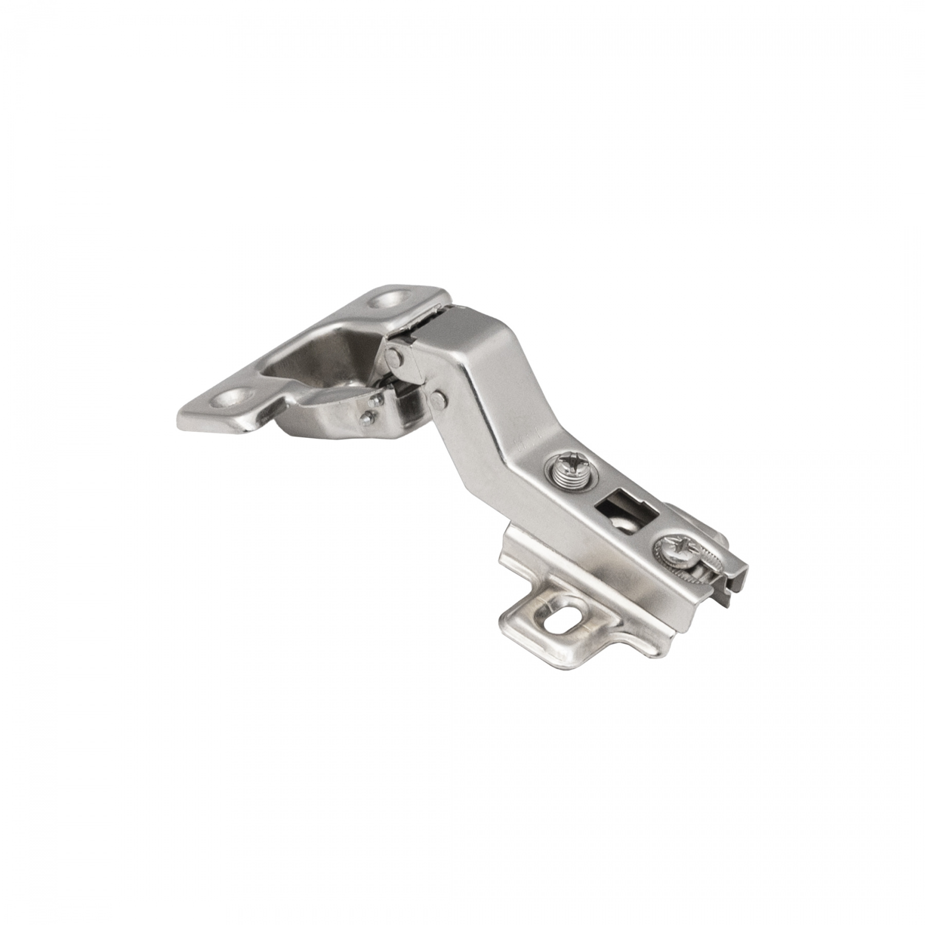 Петля угловая с системой Slide-on (надвижной монтаж), с чашкой 35 мм. Межцентровое расстояние в чашке 45 мм. Петля мебельная изготовлена из высокопрочной холоднокатаной стали. Имеет встроенный демпфер, что обеспечивает плавность закрытия петли. Угол открывания 100 градусов. Устанавливается преимущественно под скошенные фасады угловых ящиков.