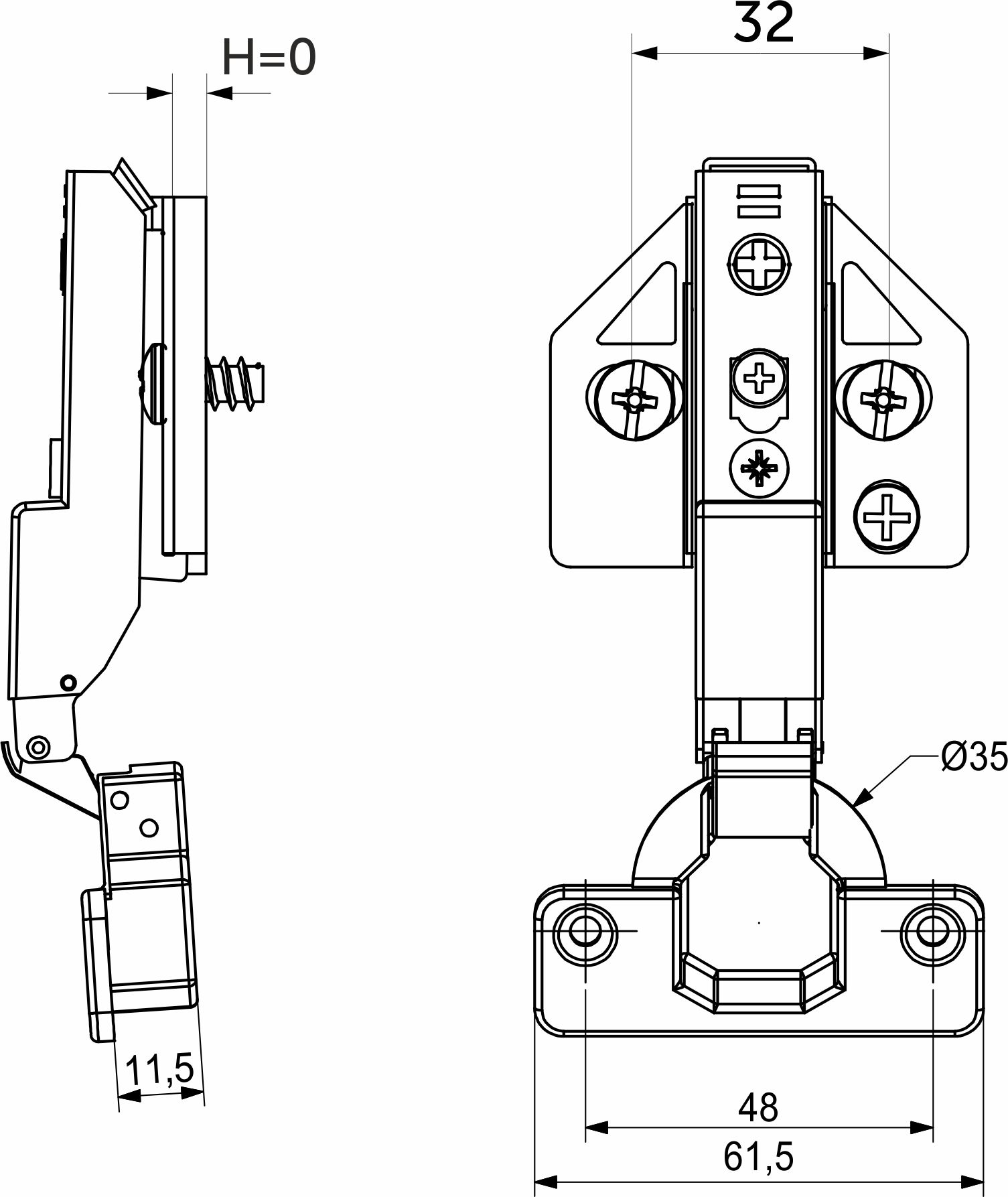 Петля полунакладная с доводчиком 48мм h0 clip-on AKS PLUS 3D (еврошурупы, заглушки)