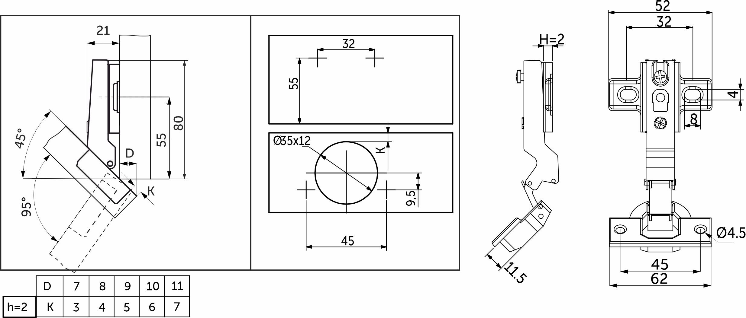 Петля д/составных фасадов 135° 45мм h2 slide-on AKS