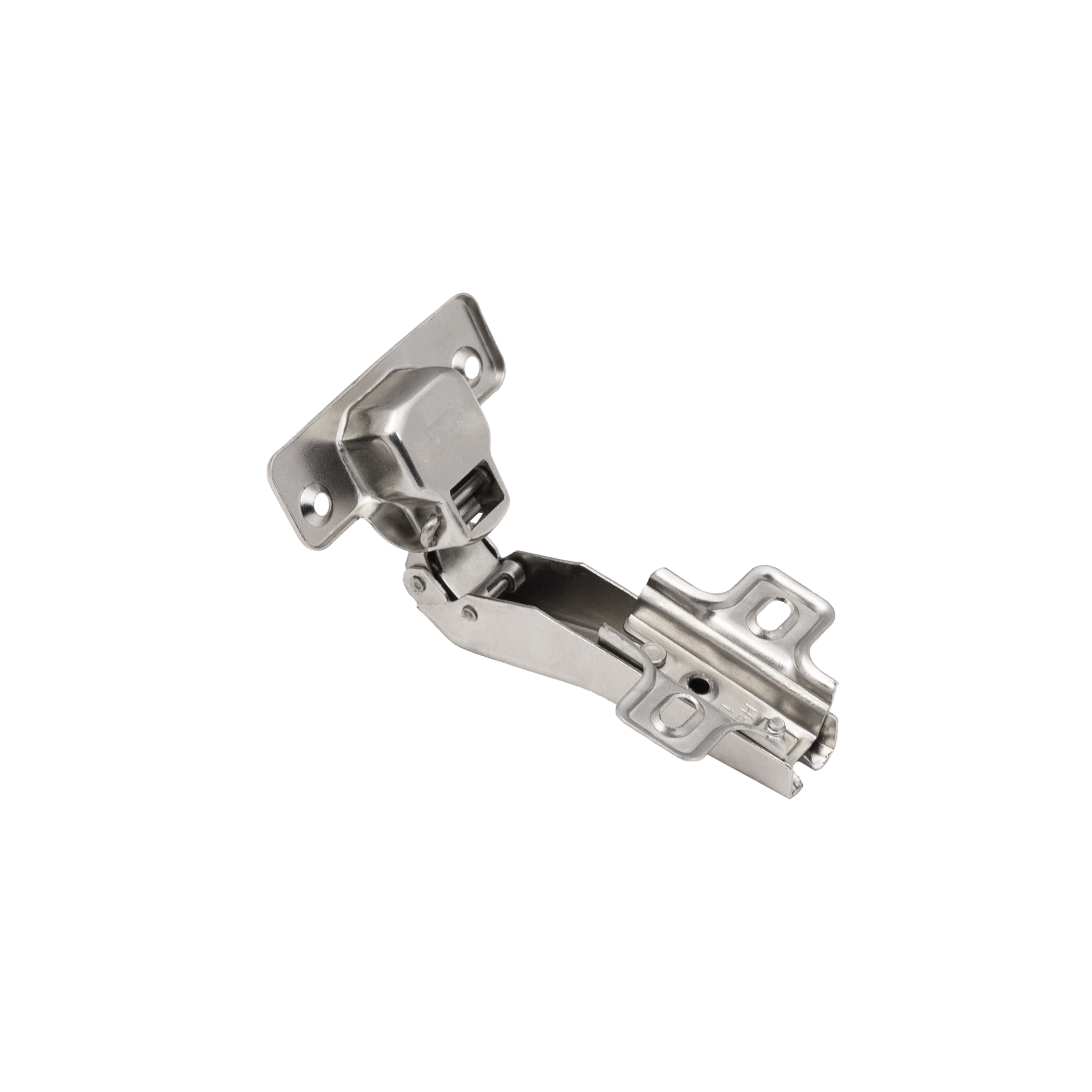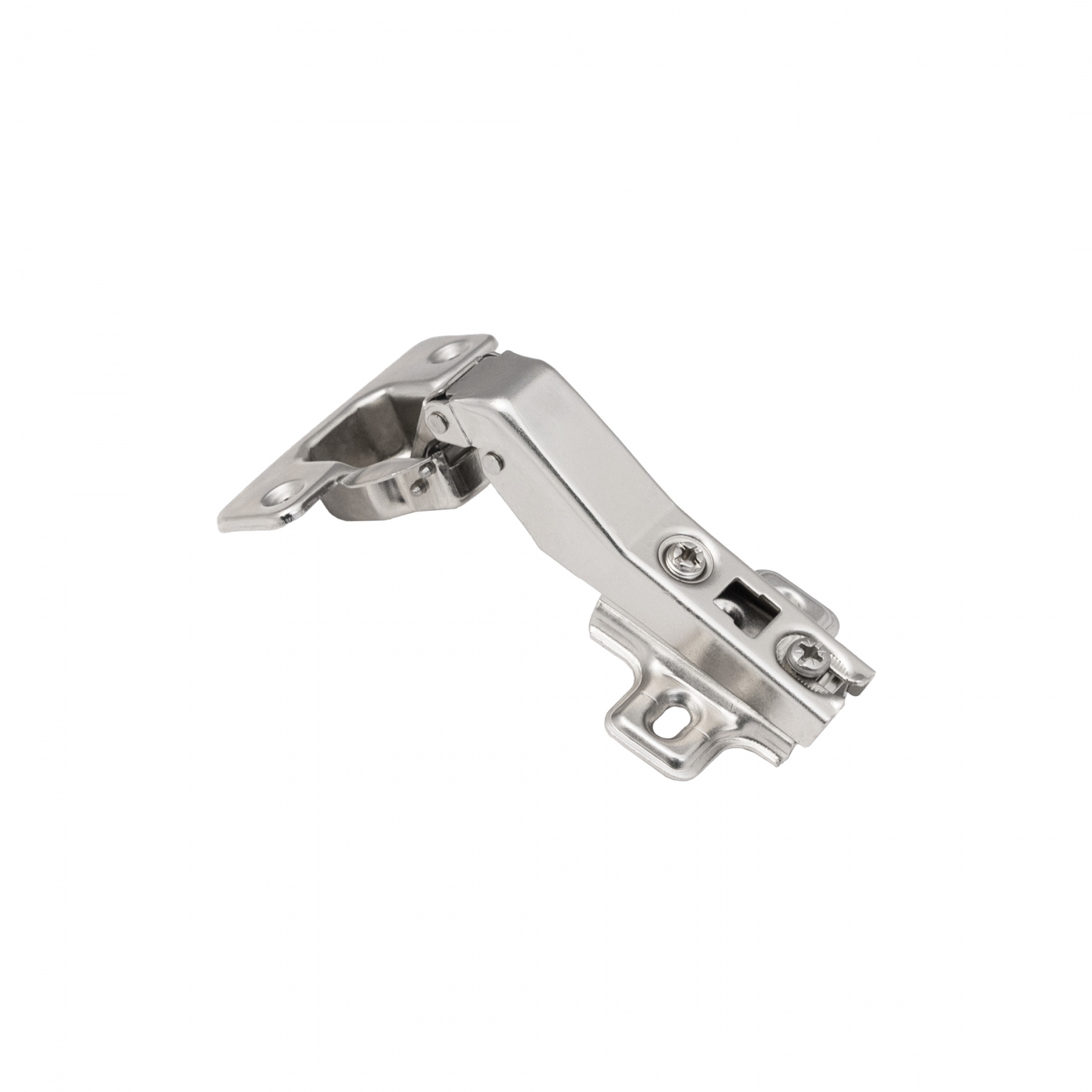 Петля угловая с доводчиком и системой надвижного монтажа slide on, с чашкой 35 мм. Межцентровое расстояние в чашке 45 или 48 мм. Петля изготовлена из высокопрочной холоднокатаной стали. Имеет встроенный демпфер, что обеспечивает плавность закрытия петли. Угол открывания 95 градусов. Устанавливается преимущественно под скошенные фасады угловых ящиков.