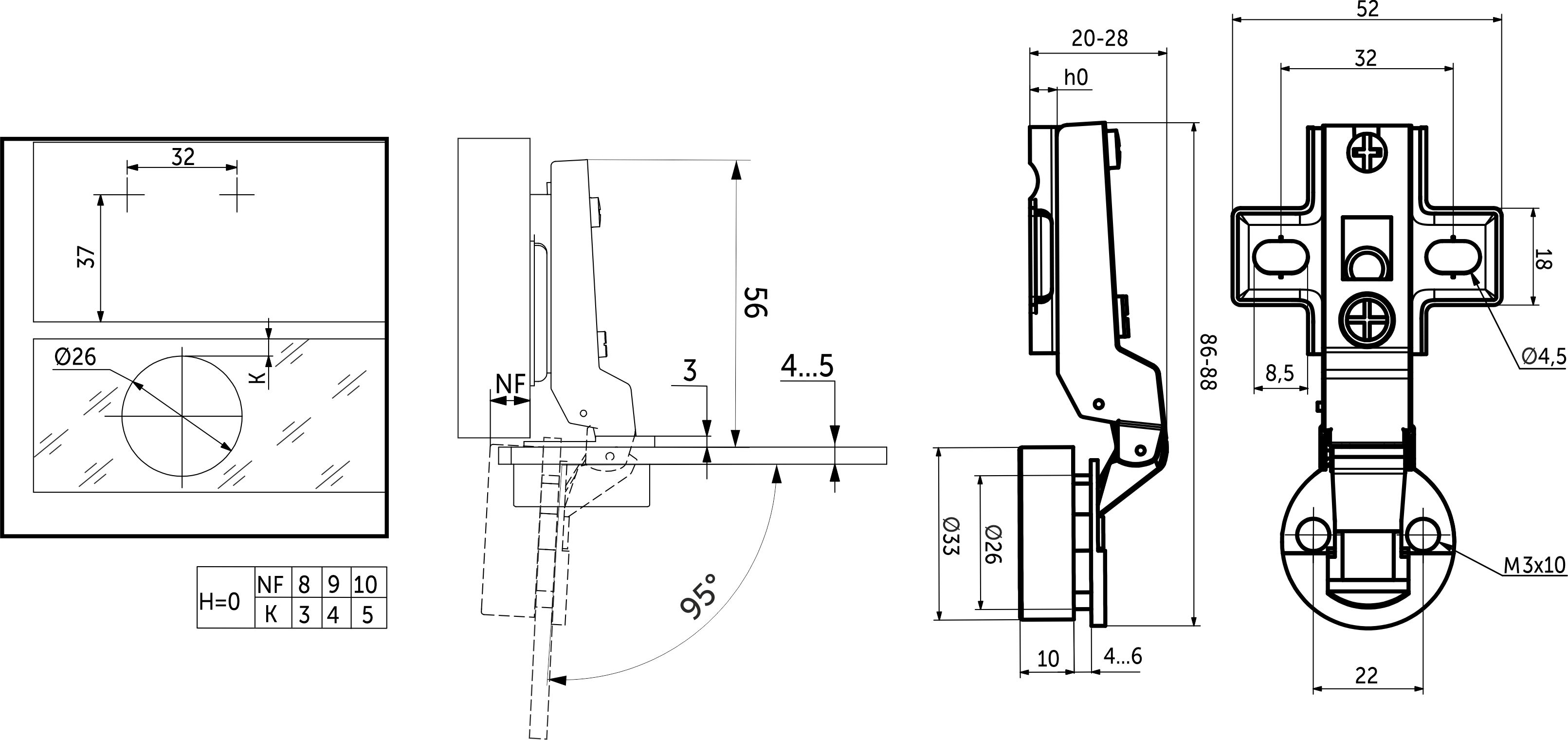 Петля внутренняя для стекла выполнена из холоднокатаной стали. Имеет механизм надвижного монтажа Slide-on и регулировочный винт на 10 мм хода резьбы. Чашка 26 мм. Петля предназначена для установки в фасад из стекла, с прорезанием стекла под диаметр 26 мм с отступом от края в 5мм. В комплекте с заглушкой декоративной с хром покрытием.