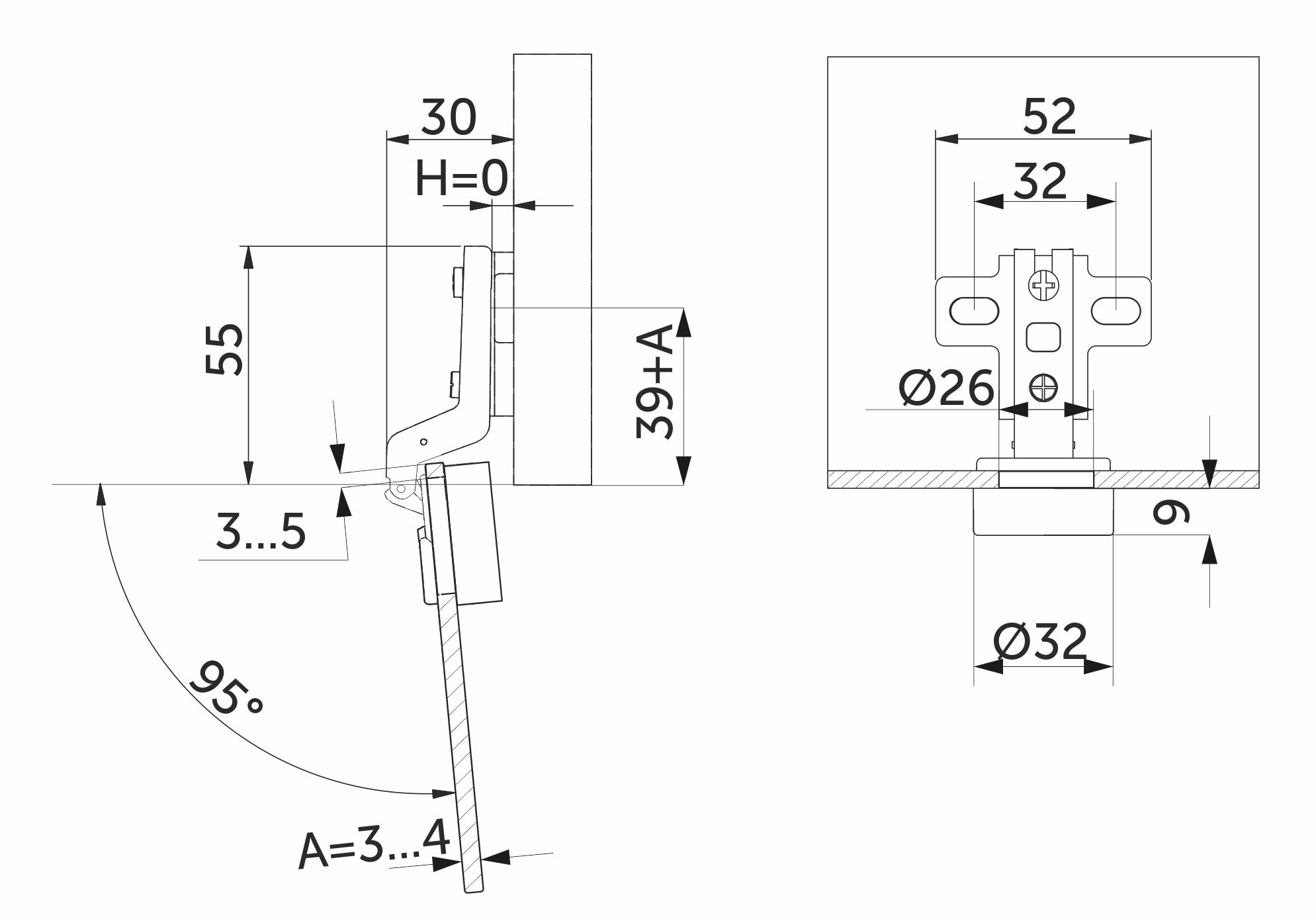 Петля внутренняя для стекла выполнена из холоднокатаной стали. Имеет механизм надвижного монтажа Slide-on и регулировочный винт на 10 мм хода резьбы. Чашка 35 мм. Петля предназначена для установки в фасад из стекла, с прорезанием стекла под диаметр 26 мм с отступом от края в 5мм. В комплекте с заглушкой декоративной с хром покрытием.