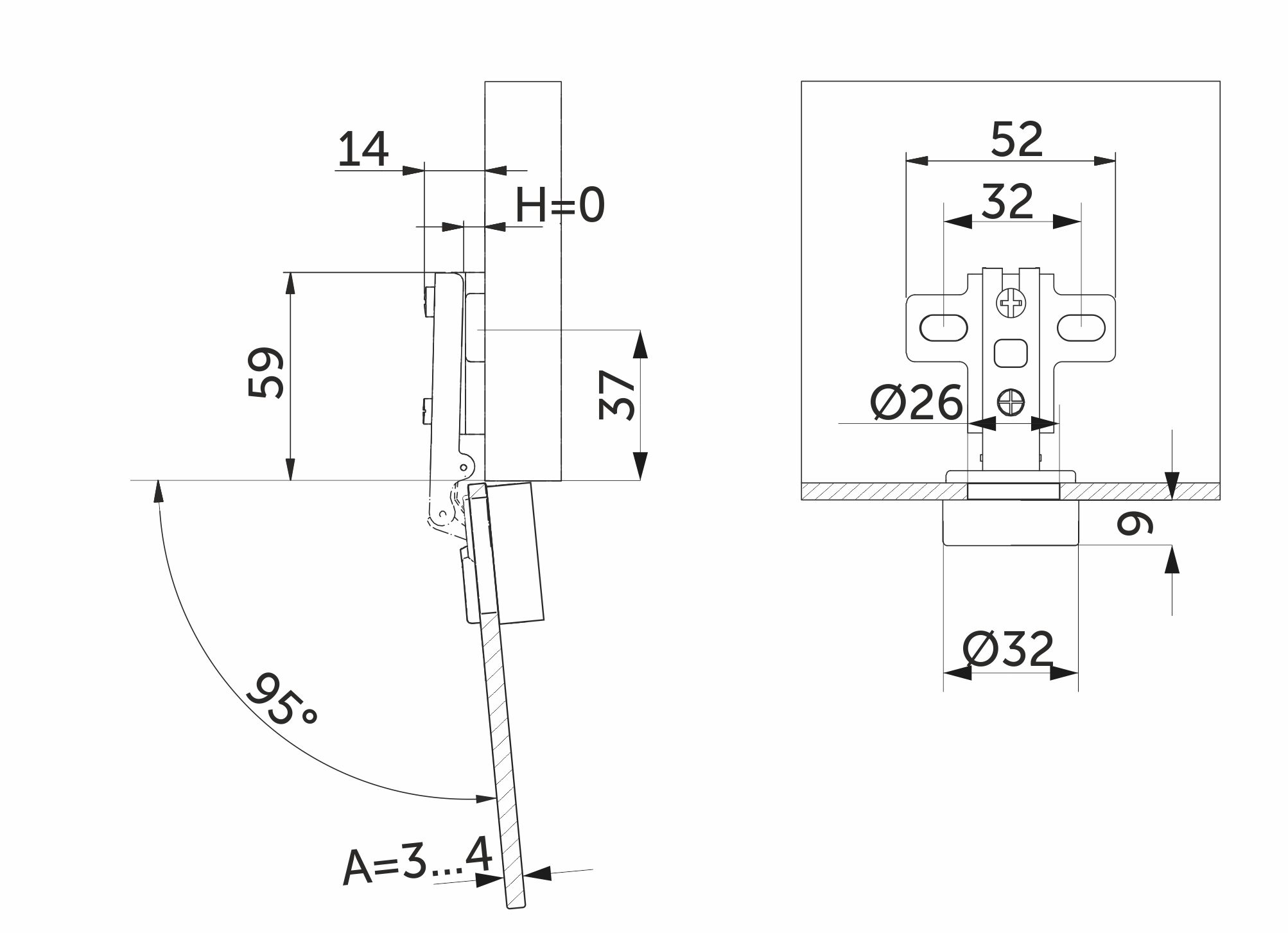 Угол открывания, °:
