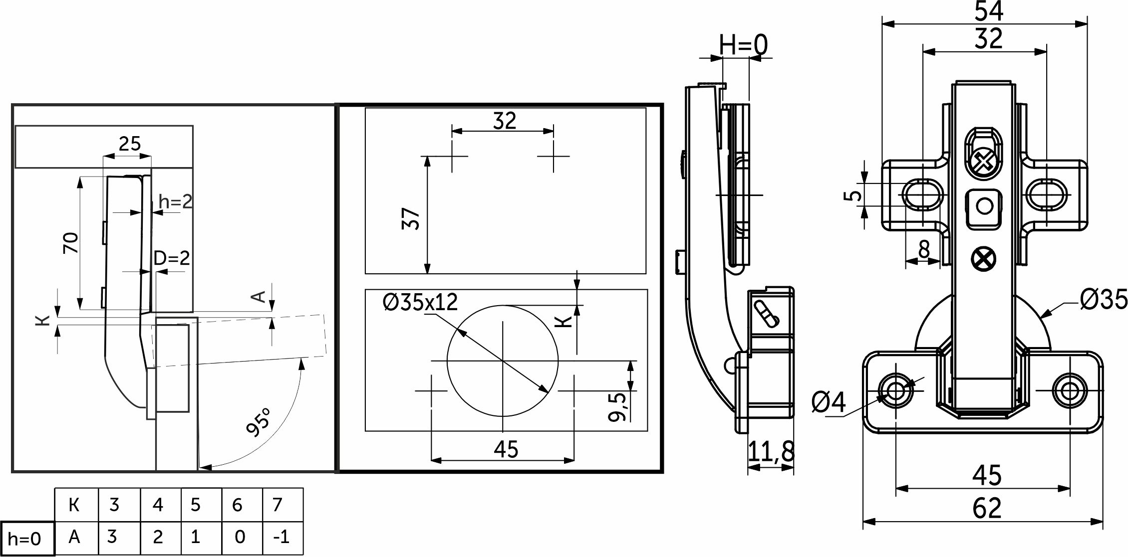 Петля д/составных фасадов 135° 45мм h2 slide-on AKS