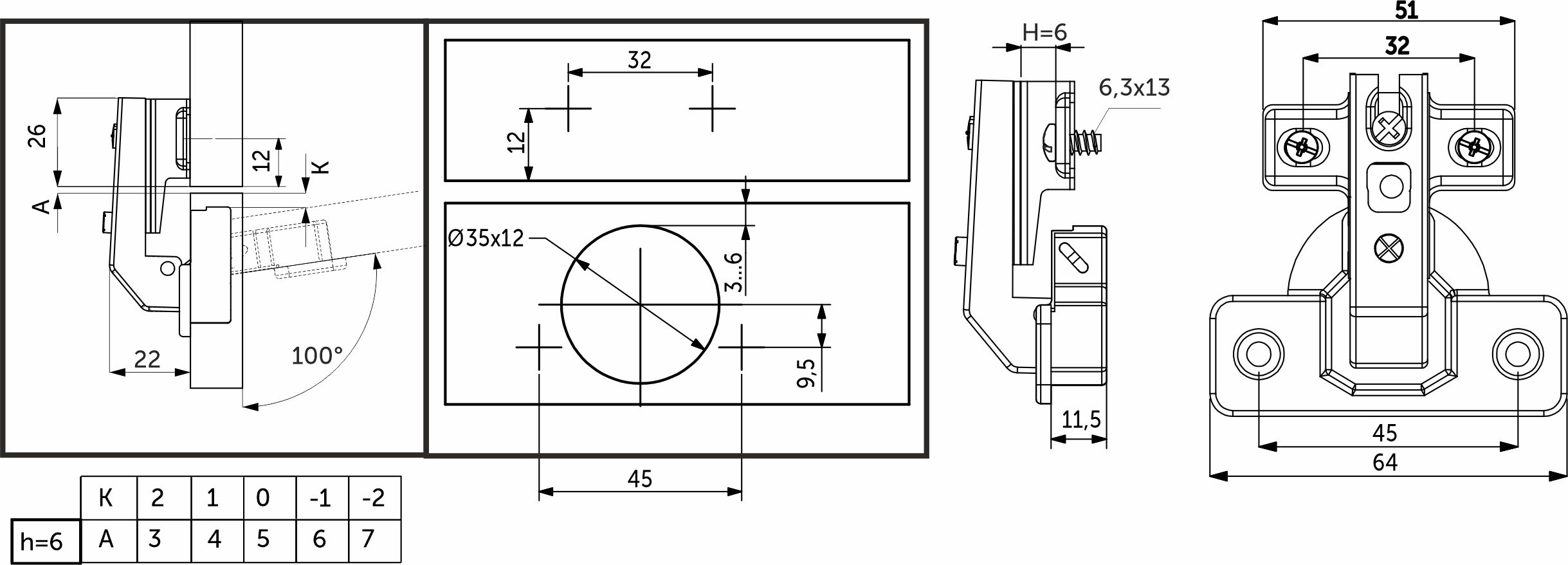 Петля угловая с доводчиком и системой надвижного монтажа slide on, с чашкой 35 мм. Межцентровое расстояние в чашке 45 мм. Петля для мебели изготовлена из высокопрочной холоднокатаной стали. Имеет встроенный демпфер, что обеспечивает плавность закрытия петли. Угол открывания 100 градусов. Устанавливается преимущественно под корпус с узкой фальшпанелью размером не менее 26 мм.