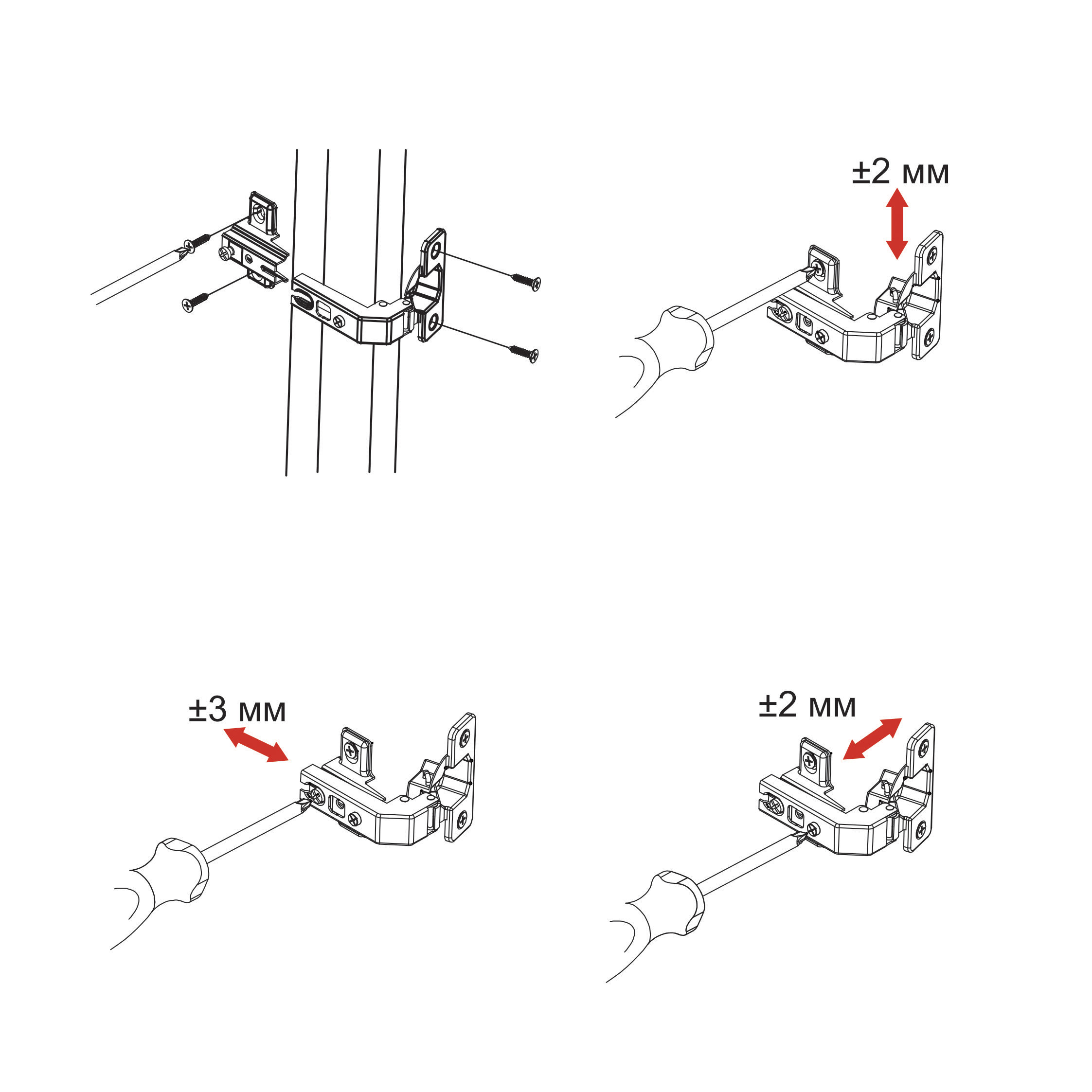 Петля под фальшпанель 90° с доводчиком 45мм h6 несъемная планка AKS (еврошурупы) короткое плечо