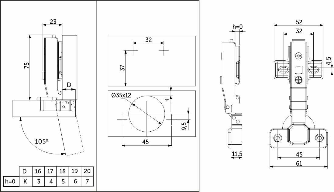 Петля д/составных фасадов 135° 45мм h2 slide-on AKS