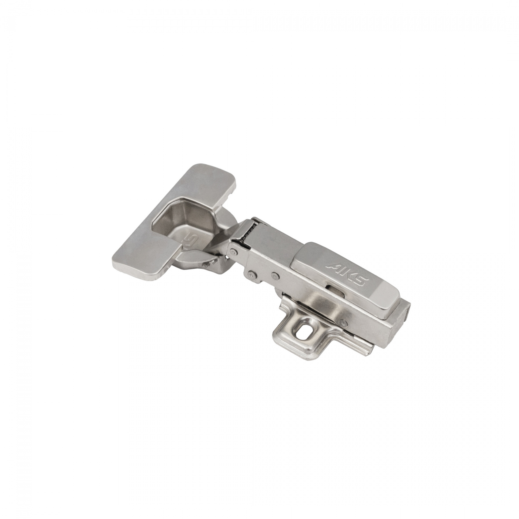 Петля накладная с доводчиком AKS – классическая мебельная петля с механизмом плавного закрывания фасада, с углом установки 90°.