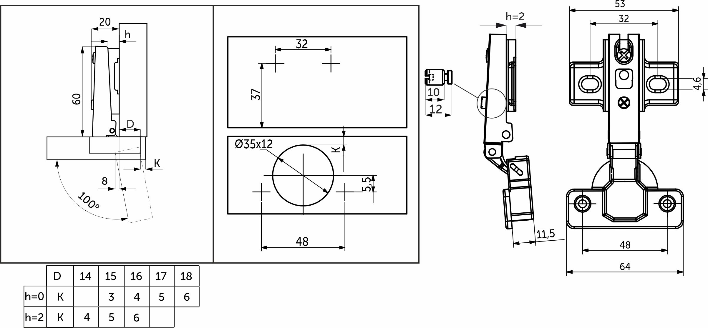 Петля д/составных фасадов 135° 45мм h2 slide-on AKS