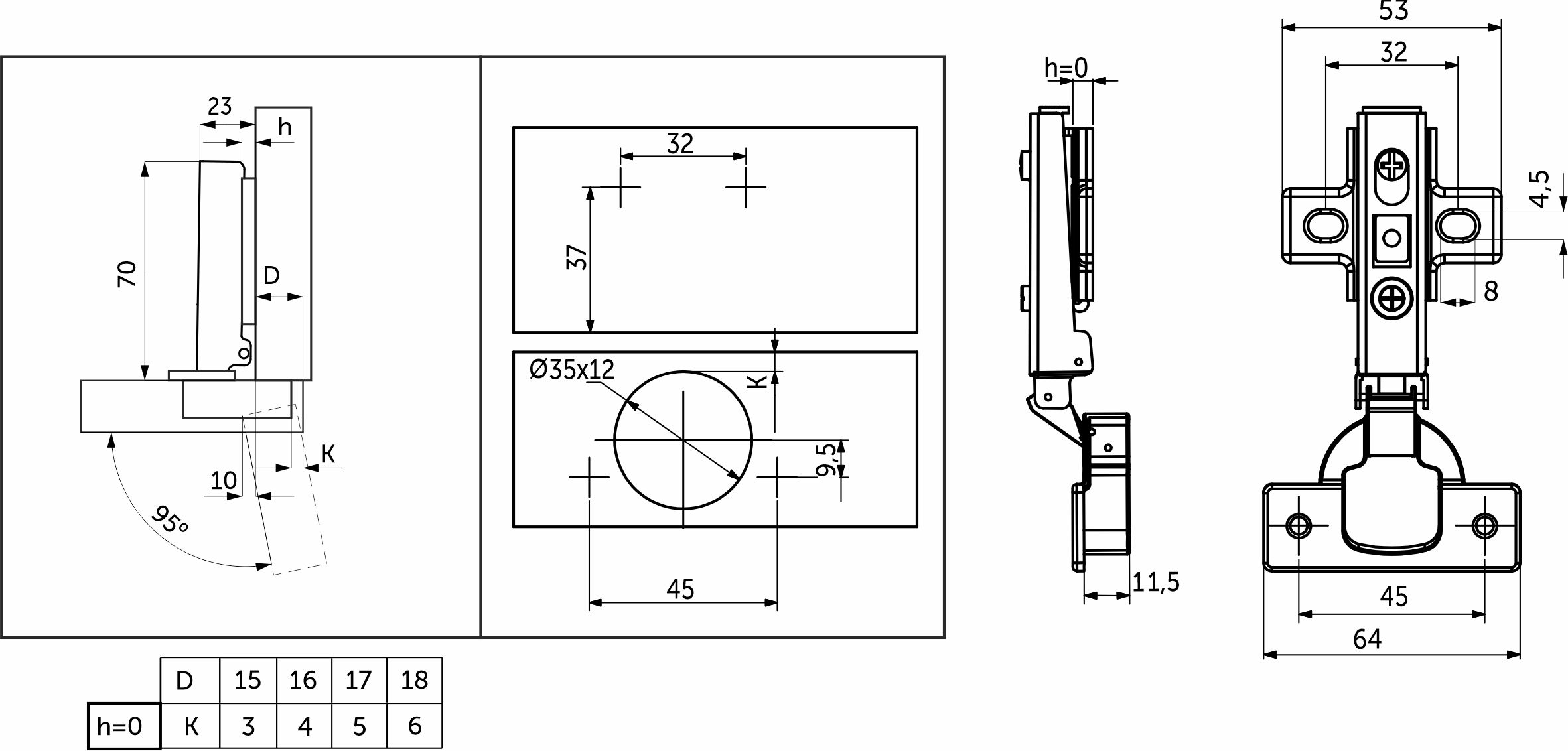 Петля д/составных фасадов 135° 45мм h2 slide-on AKS