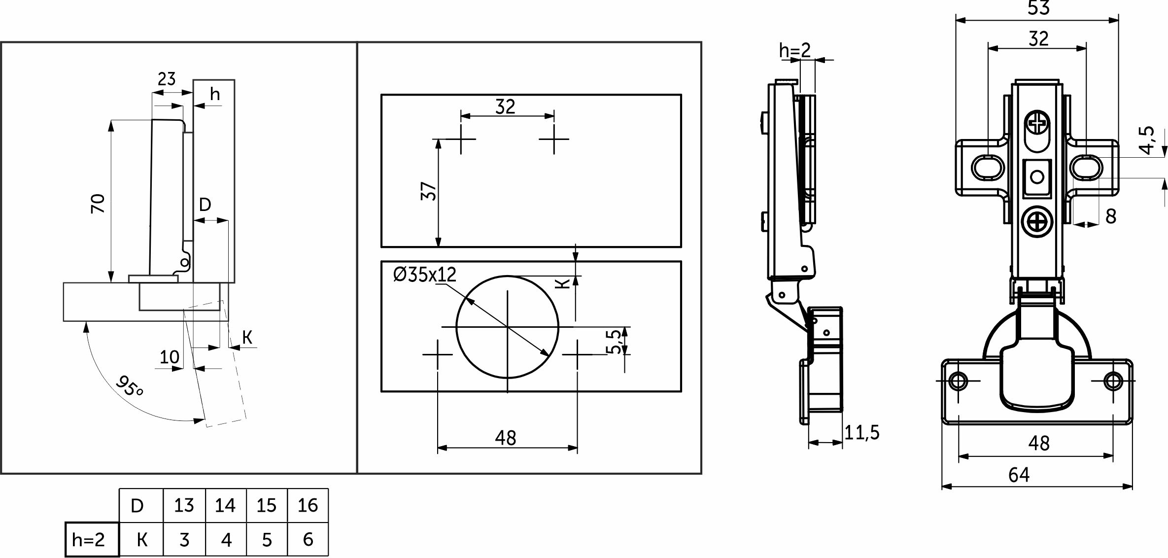 Петля д/составных фасадов 135° 45мм h2 slide-on AKS