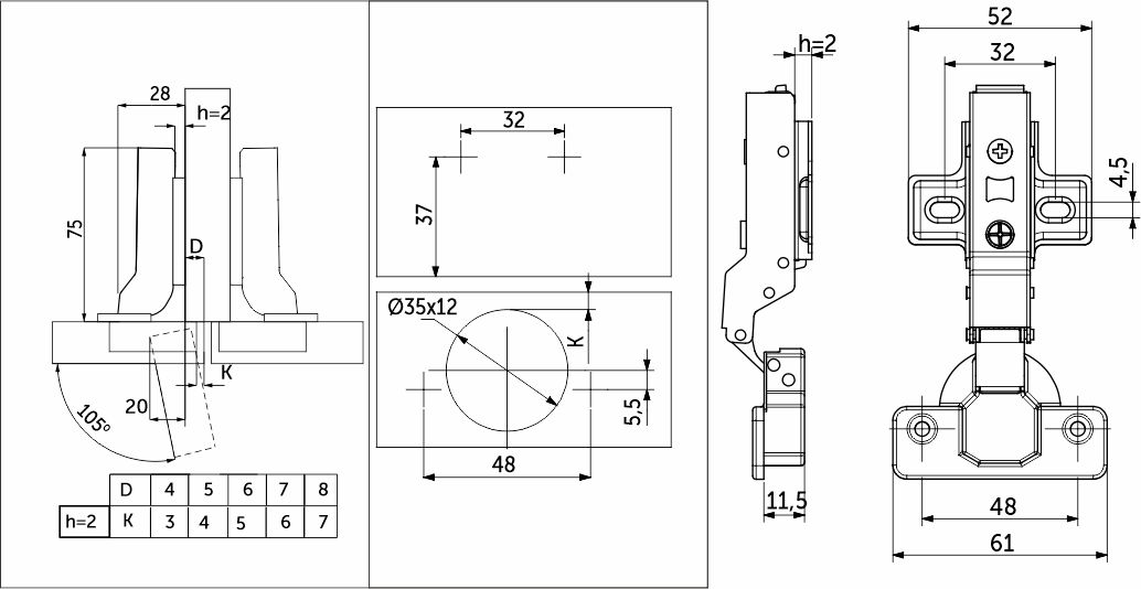 Петля д/составных фасадов 135° 45мм h2 slide-on AKS