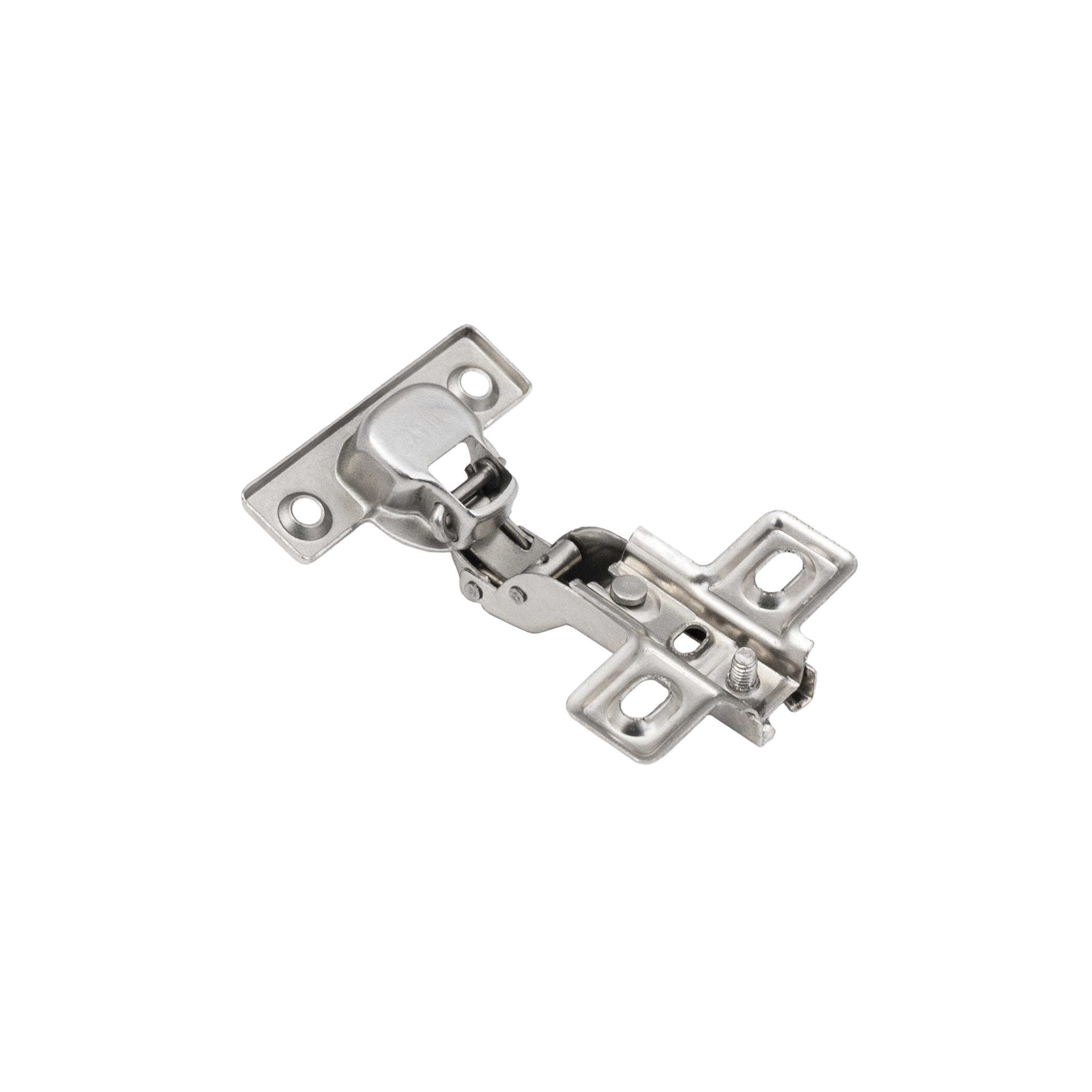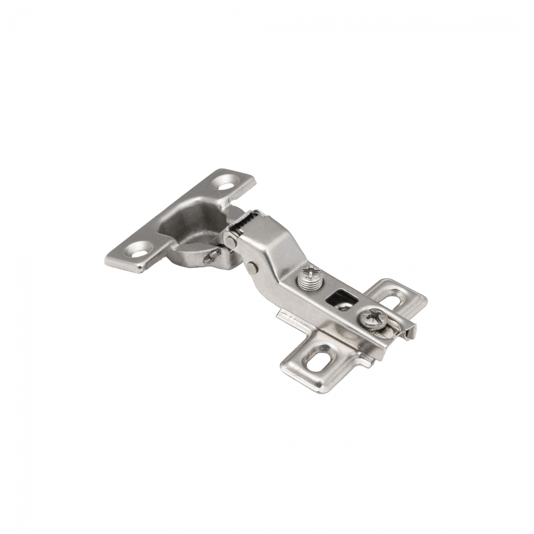 Петля полунакладная мини выполнена из холоднокатаной стали. Чашка 26 мм. Имеет механизм Slide-on (надвижной монтаж) и регулировочный винт с размером по резьбе в 10 мм.