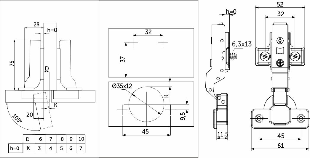 Петля д/составных фасадов 135° 45мм h2 slide-on AKS