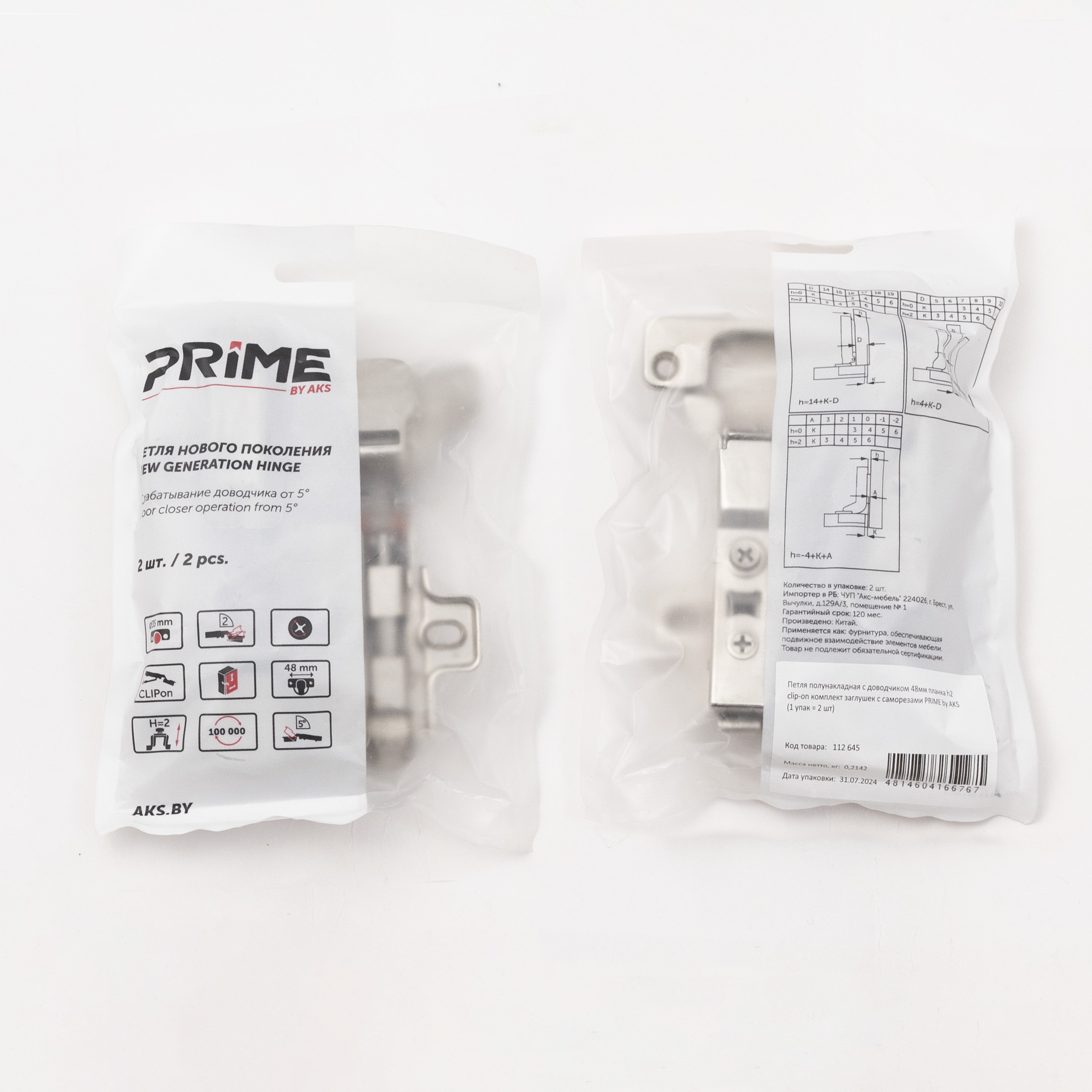 Петля полунакладная с доводчиком 48мм h2 clip-on PRIME by AKS (саморезы, заглушки) (упак. = 2 шт.)