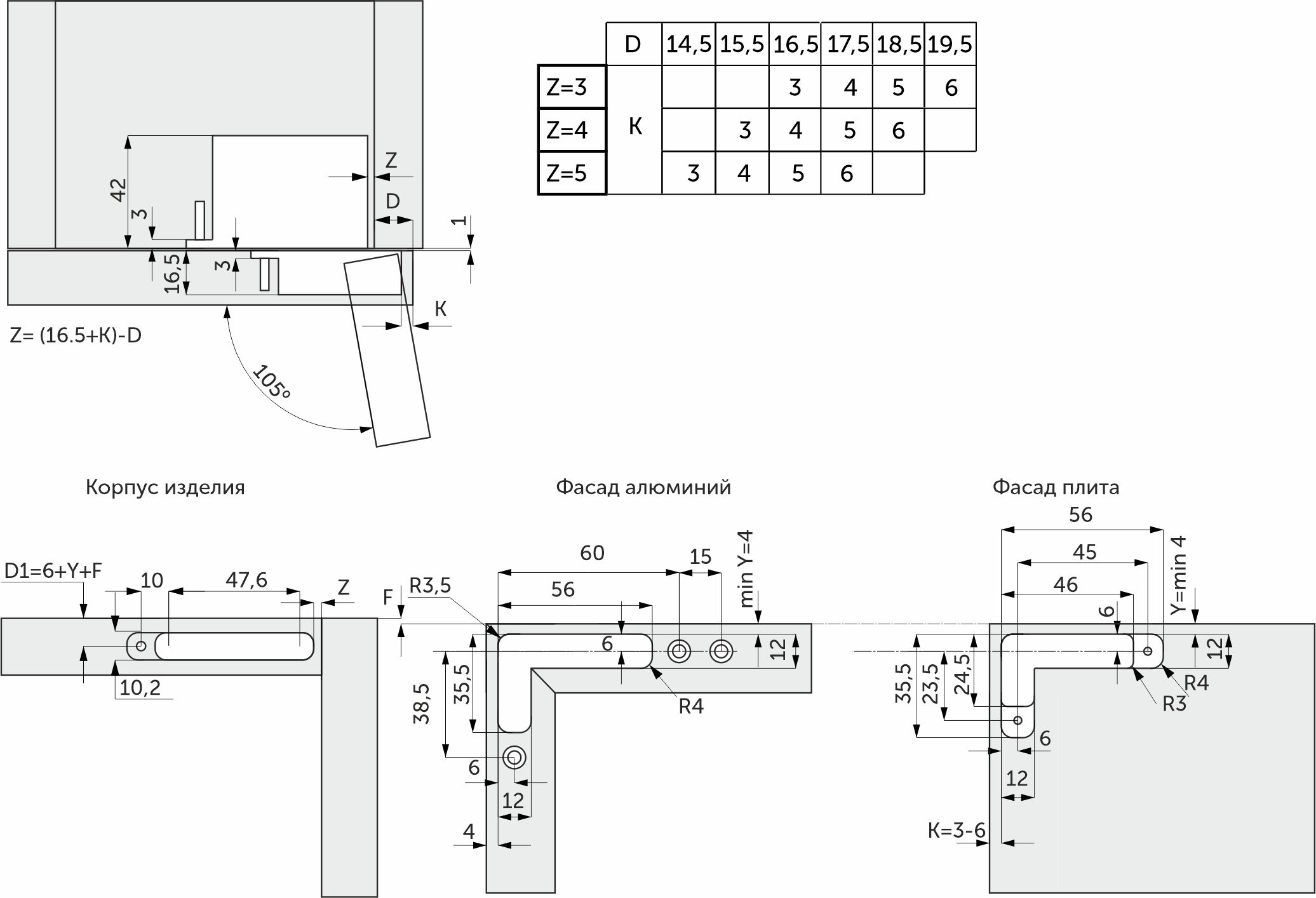 Для накладного и полунакладного фасада