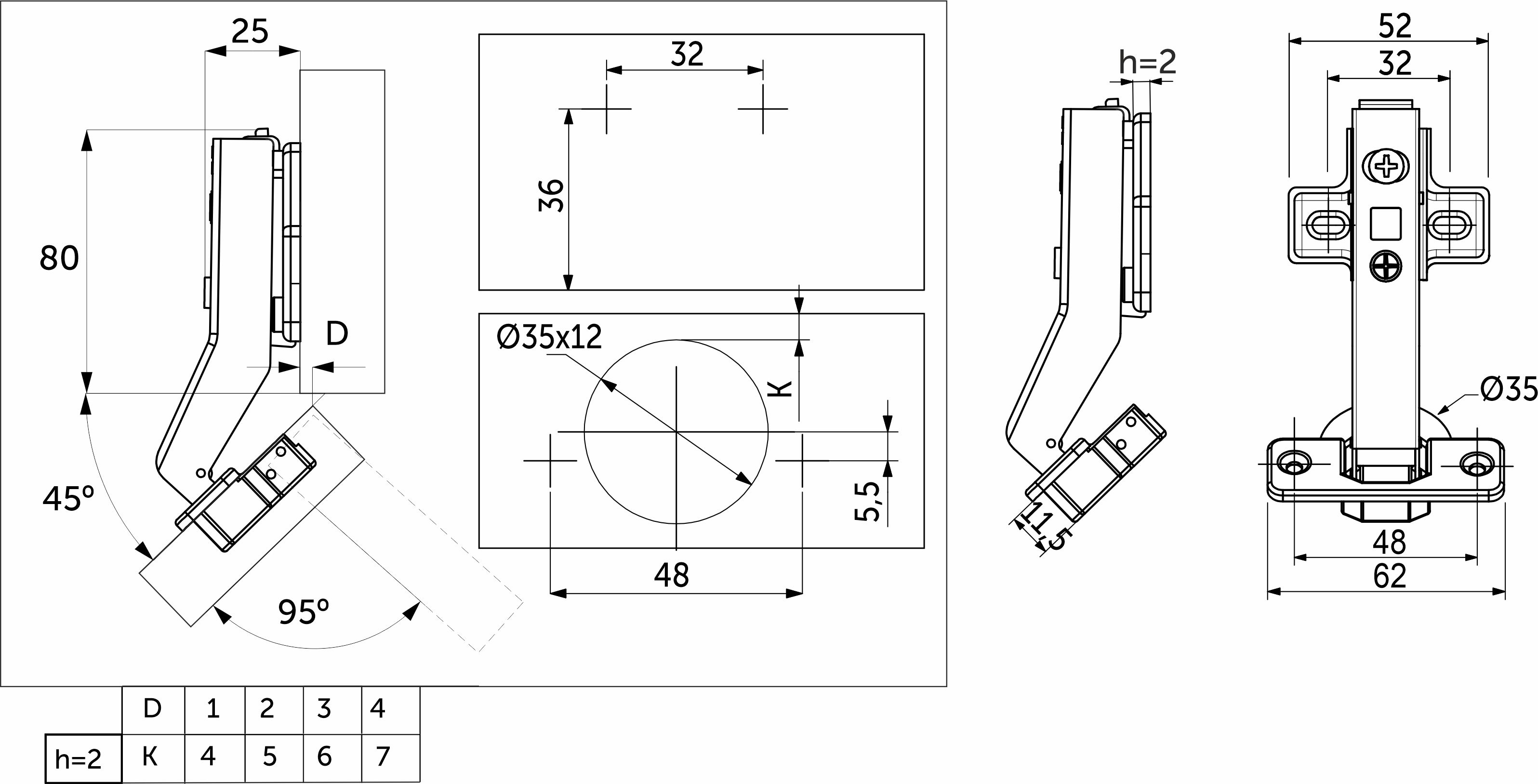 Петля д/составных фасадов 135° 45мм h2 slide-on AKS