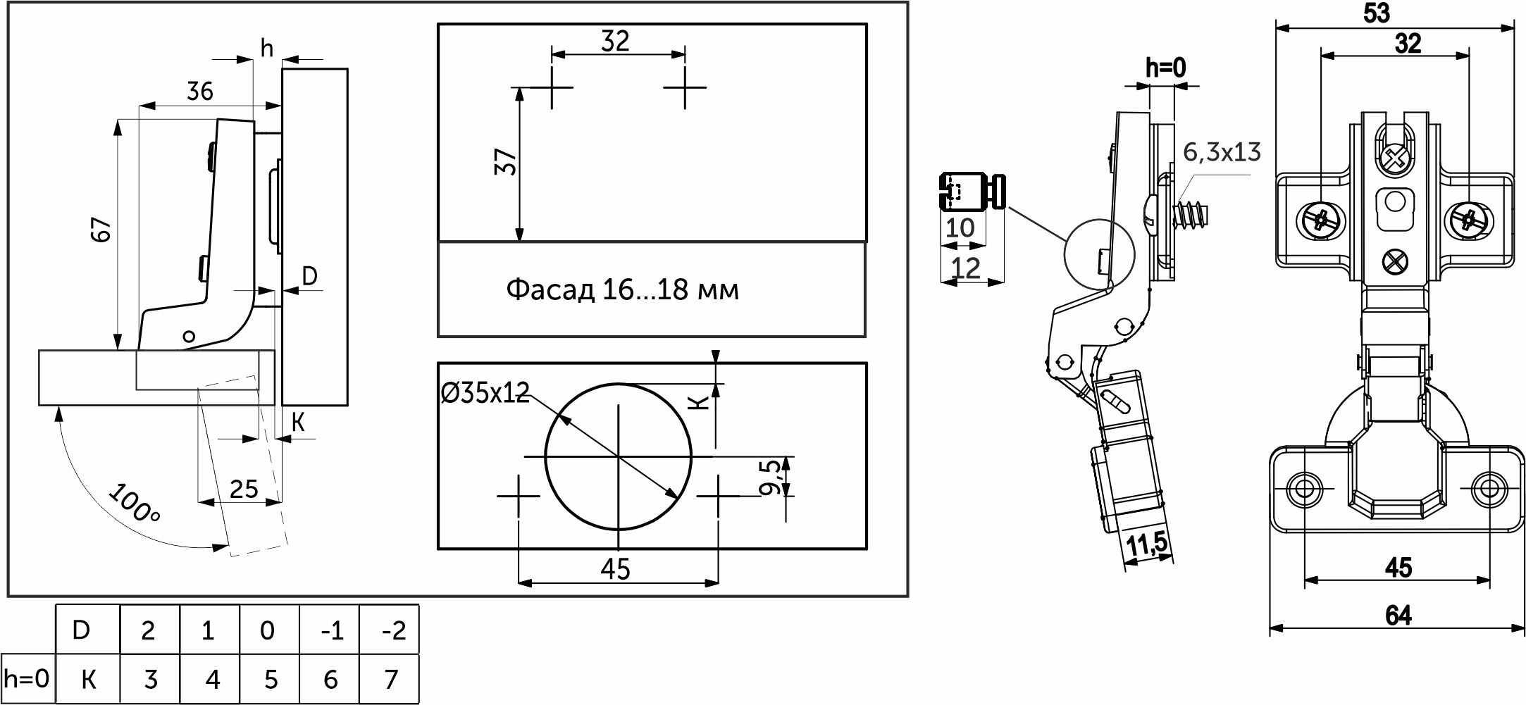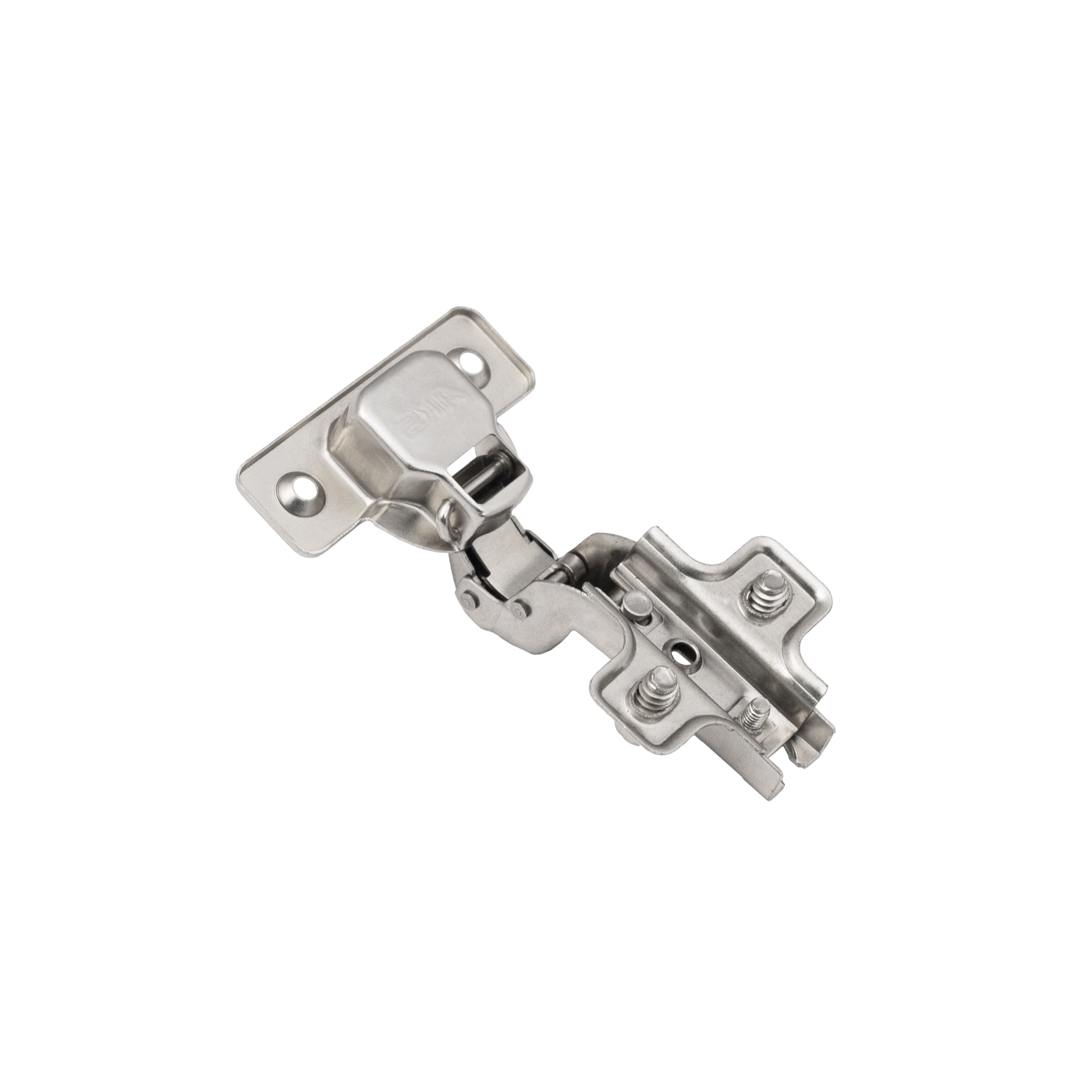 Петля внутренняя выполнена из холоднокатаной стали, с чашкой 35 мм. Имеет механизм надвижного монтажа slide on и регулировочный винт с размером по резьбе в 10 мм. Мебельная петля предназначена для установки на фасад, утопленный в границы корпуса. В зависимости от категории AKS Light, AKS, AKS Plus - запас прочности от 50 000 до 80 000 циклов на фасаде 1000x600 или 6,4 кг на пару петель. Вес петель от 52 до 60 гр.