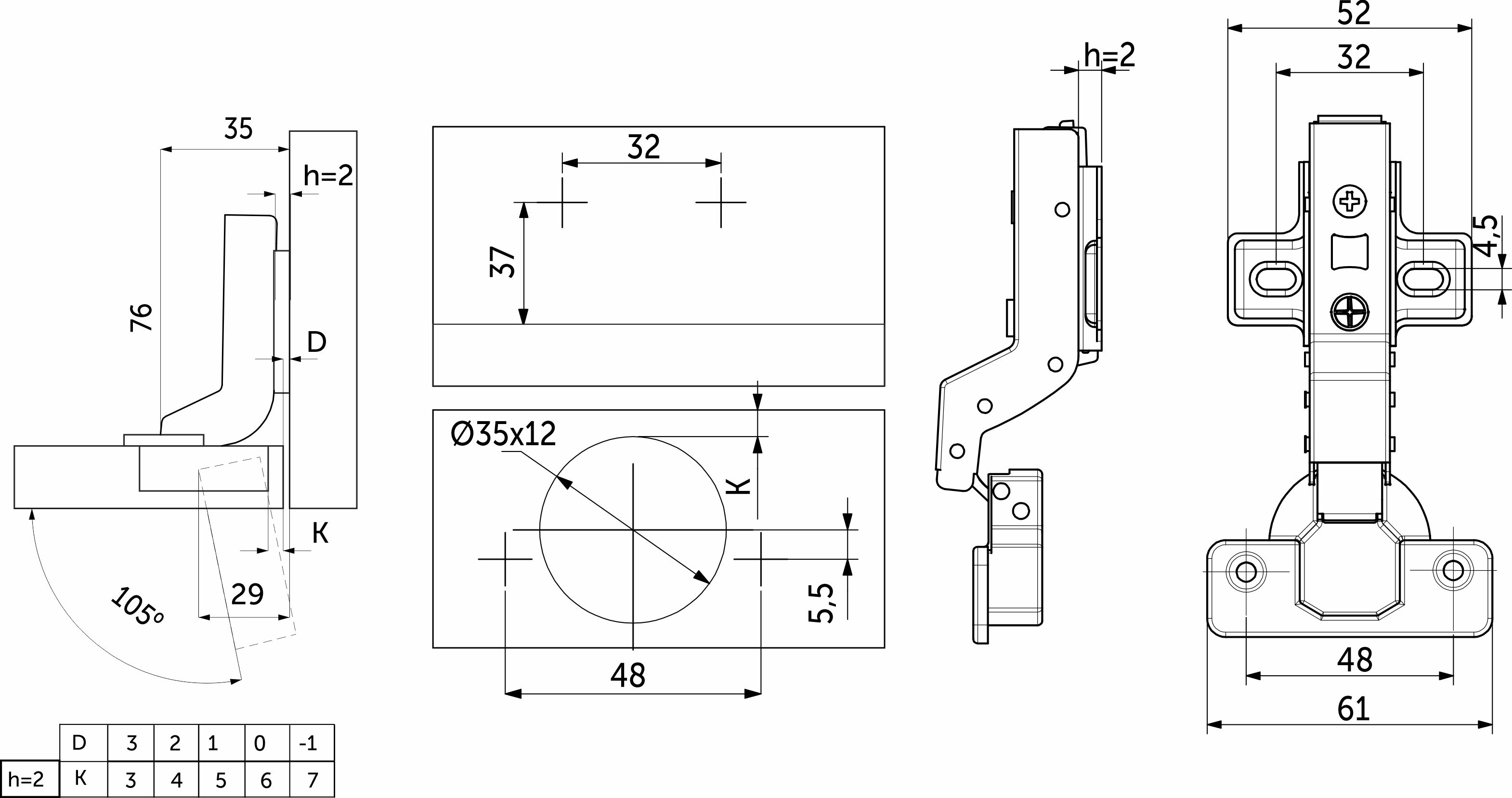 Петля д/составных фасадов 135° 45мм h2 slide-on AKS