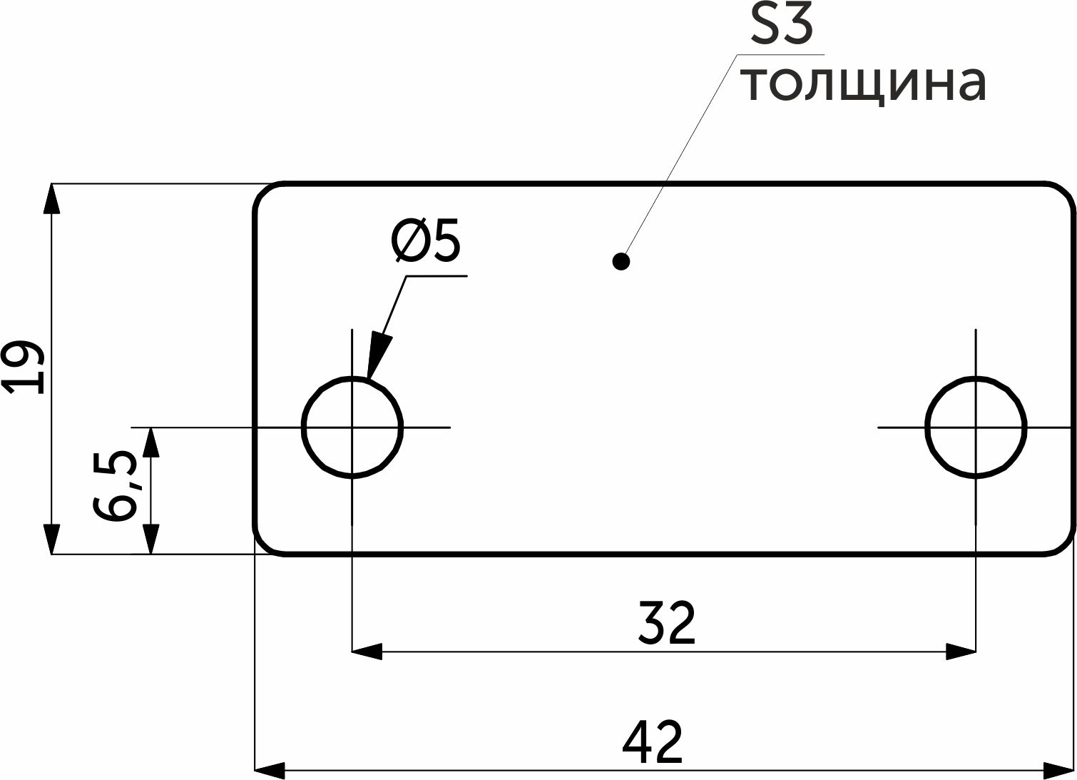 Металлическая пластина размером 18мм х 42мм и толщиной 3 мм имеет два монтажных отверстия. Данная пластина служит для надежного соединения двух деталей.