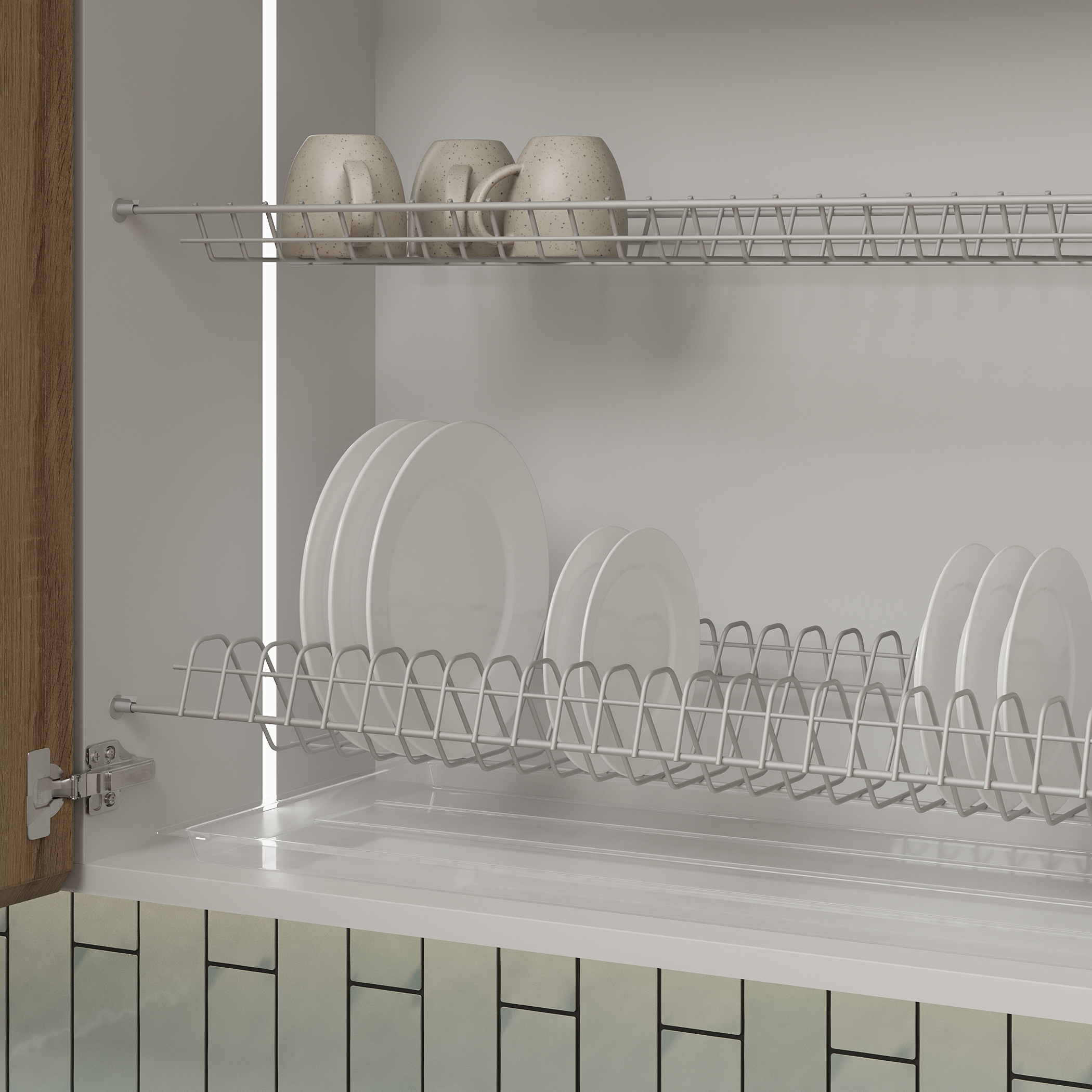 Поддон подходит для Сушки для посуды MOUNT, GRIDLI, NORWIG (не требует подрезания под ДСП 18мм).
