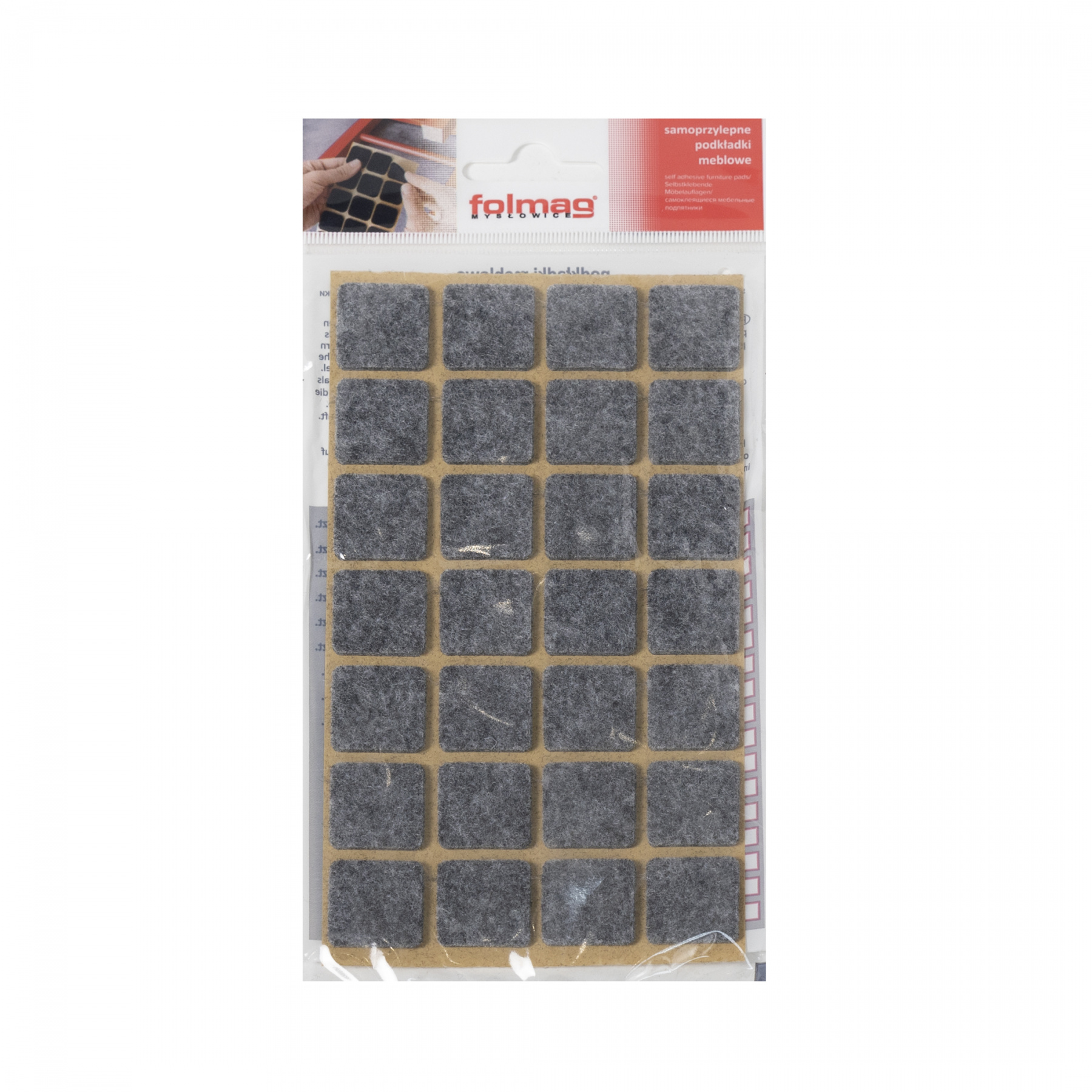 Подкладка самоприлипающая фетровая 20х20мм (1лист-28шт) серая Folmag