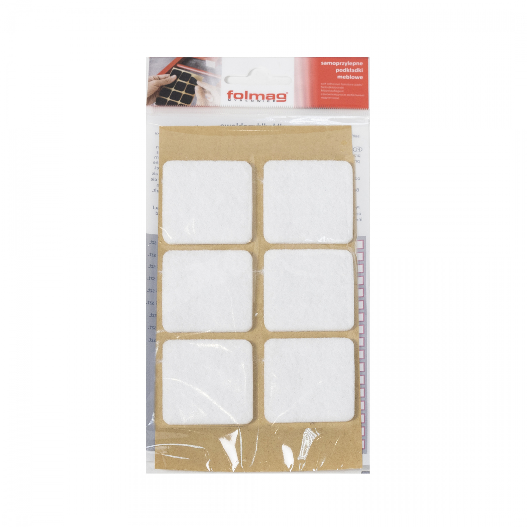 Подкладка самоприлипающая фетровая 40х40мм (1лист-6шт) белая Folmag