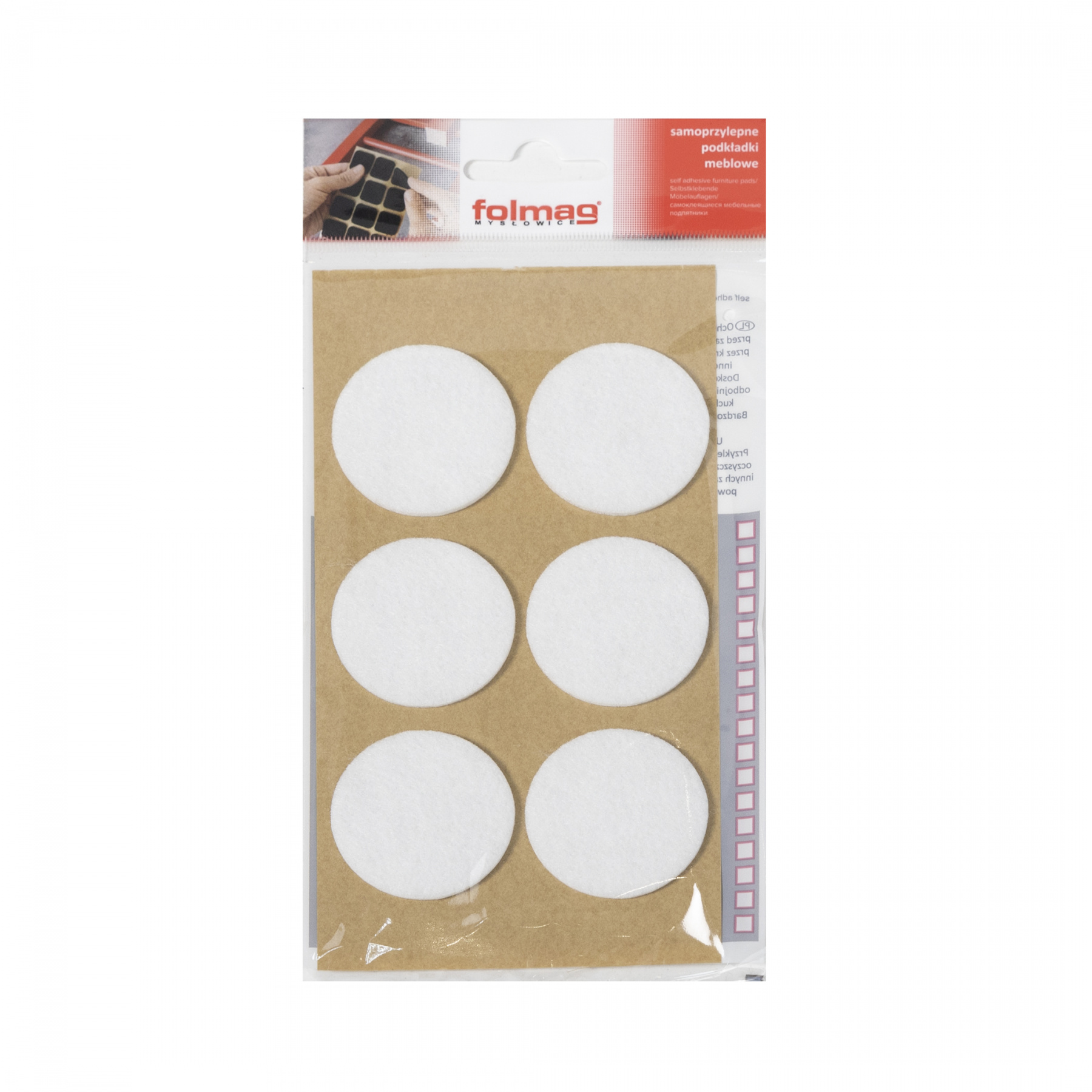 Подкладка самоприлипающая фетровая d40мм (1лист-6шт) белая Folmag