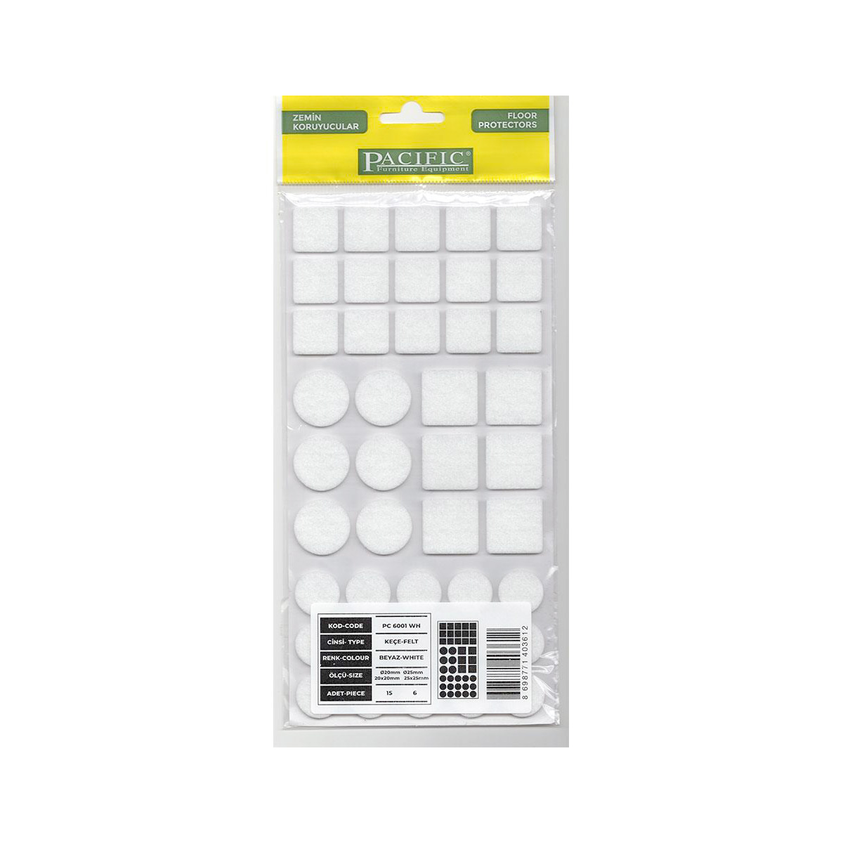 Подкладка самоприлипающая фетровая микс (d20, 20 х 20 - 15 штук d25, 25 х 25 - 6 штук) белая Pacific PC 6001 WH