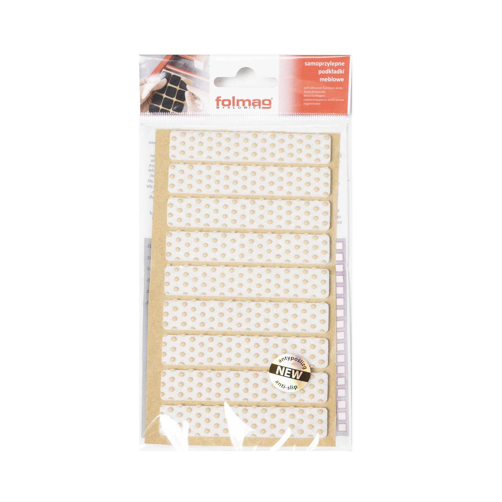 Подкладка самоприлипающая фетровая прорезиненная 15 х 80мм (1упак.=9шт), белая, Folmag