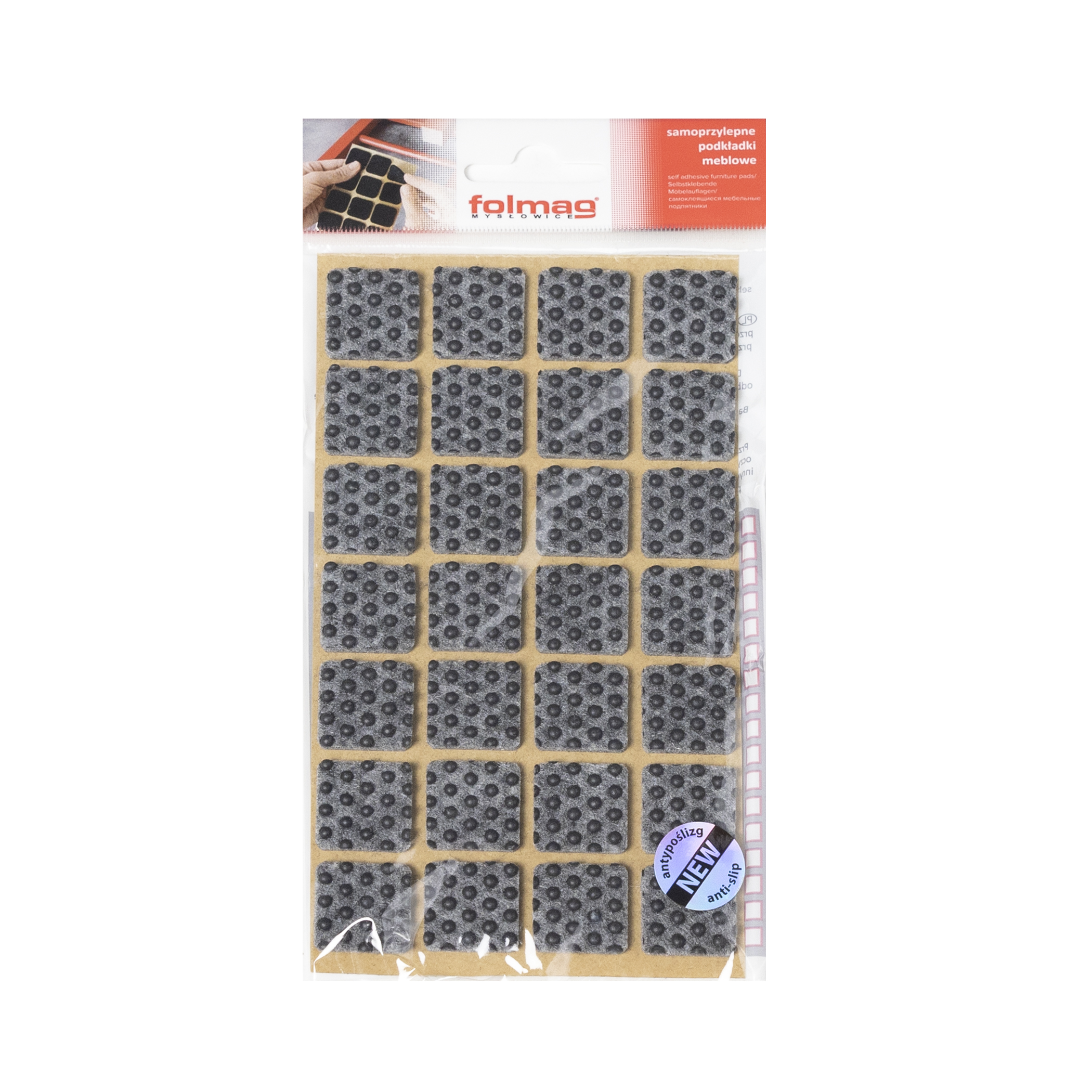 Подкладка самоприлипающая фетровая прорезиненная 20 х 20мм (1упак.=28шт), серая, Folmag