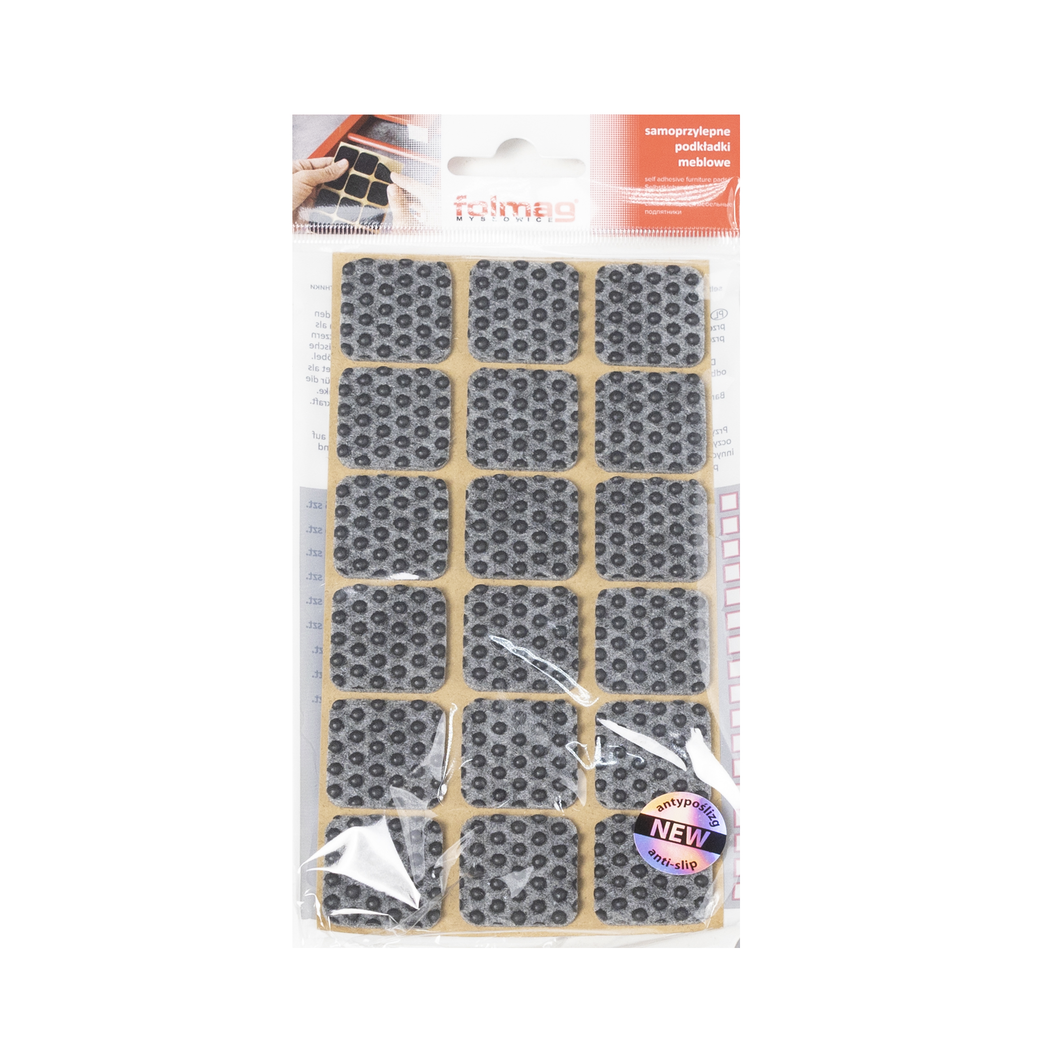 Подкладка самоприлипающая фетровая прорезиненная 25 х 25мм (1упак.=18шт), серая, Folmag
