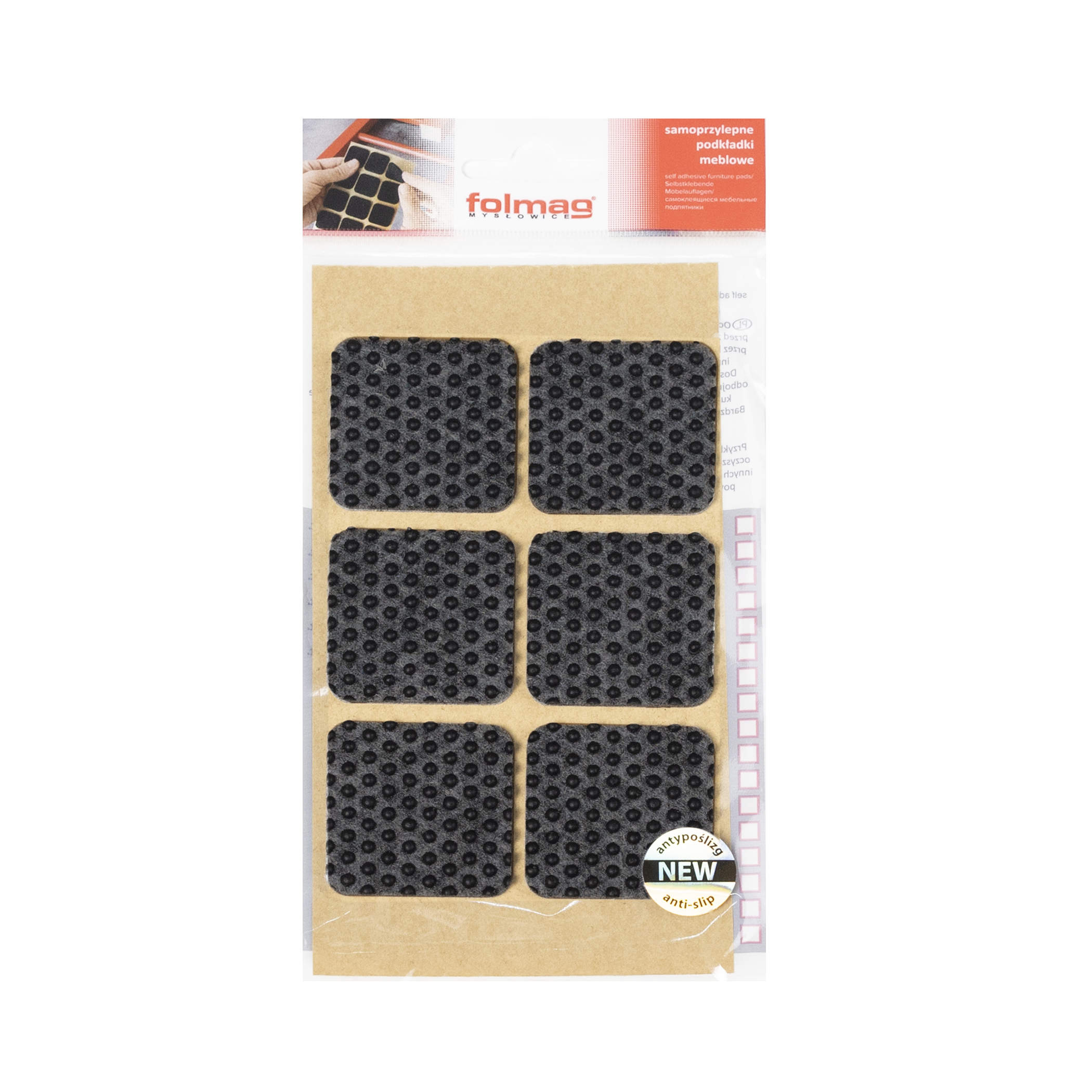 Подкладка самоприлипающая фетровая прорезиненная 40 х 40мм (1упак.=6шт), черная, Folmag