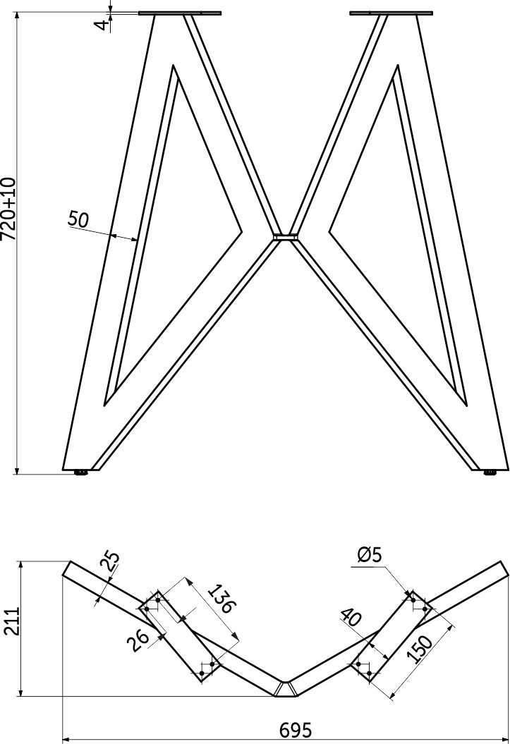 Подстолье HAROLD h720, черный AKS (1 компл. = 2 шт.)